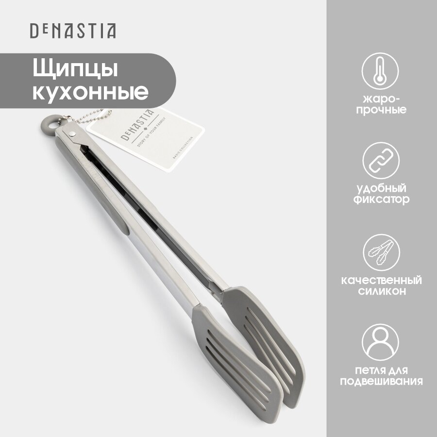 10 цен на Щипцы кухонные универсальные DeNASTIA 33,5x5,5см, лопатка с прорезями, длинная ручка, цвет серый
