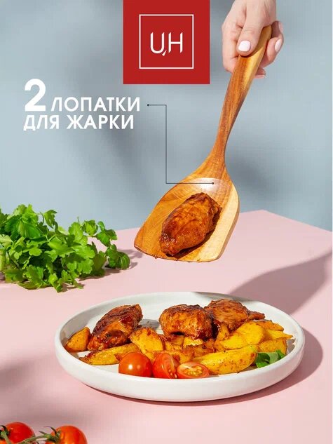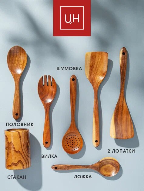 Отзывы на Набор кухонных принадлежностей UR HOME, 7 предметов, деревянные лопатки с подставкой стакан, кухонная утварь