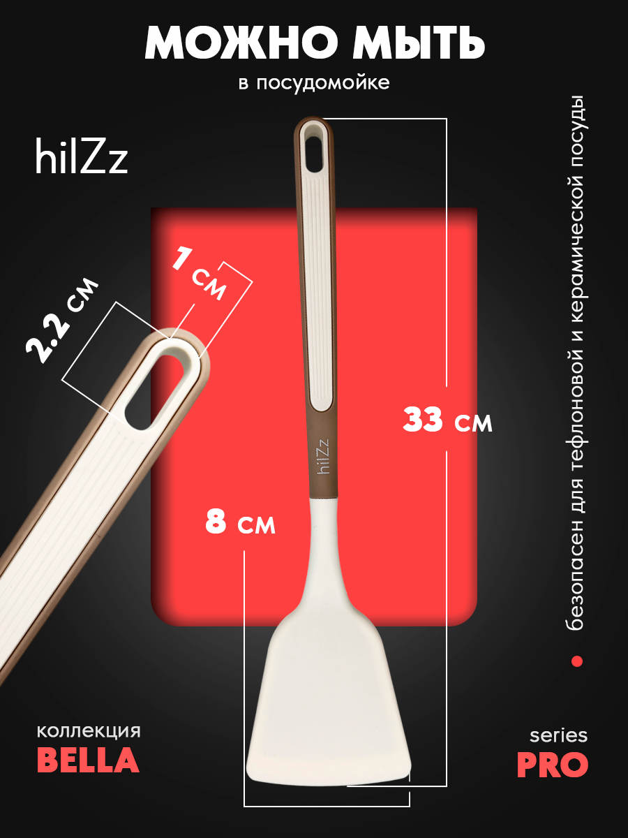10 цен на Лопатка кухонная hilZz, силикон / пластик, 33 * 8 см, молочная