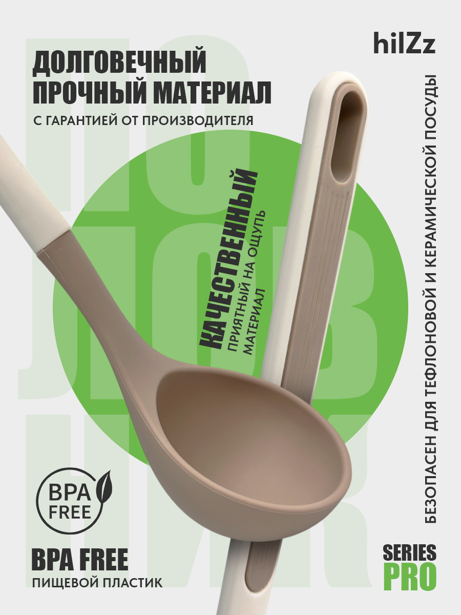 10 цен на Кухонный половник hilZz из силикона и пластика, 32 см, безопасен для всех покрытий, молочно-серый