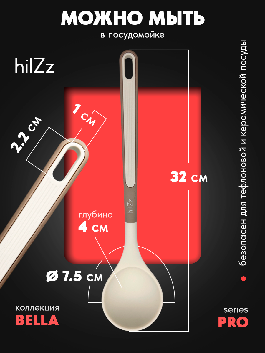 Отзывы на Кухонный половник hilZz из силикона и пластика, 32 см, безопасен для всех покрытий, молочный