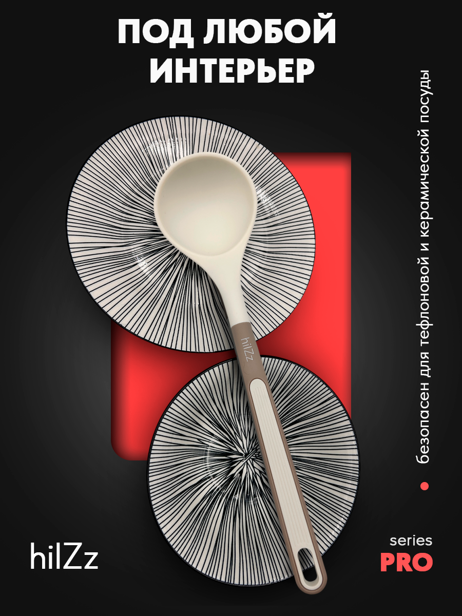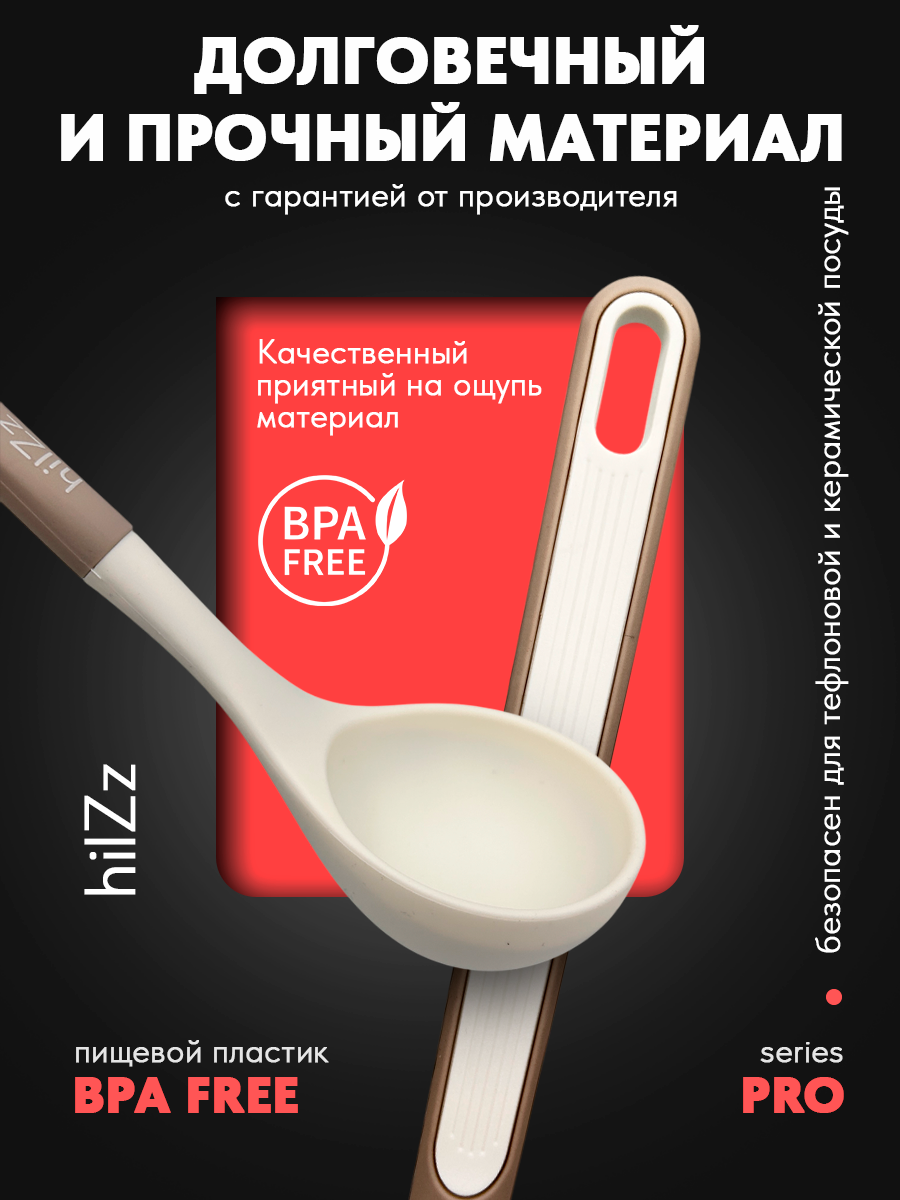 10 цен на Кухонный половник hilZz из силикона и пластика, 32 см, безопасен для всех покрытий, молочный