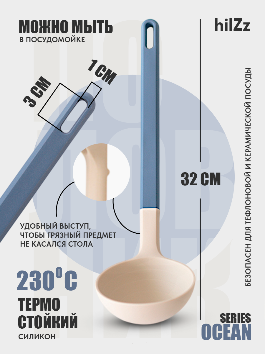10 цен на Кухонный половник hilZz из силикона и пластика, 32 см, безопасен для всех покрытий, молочно-синий