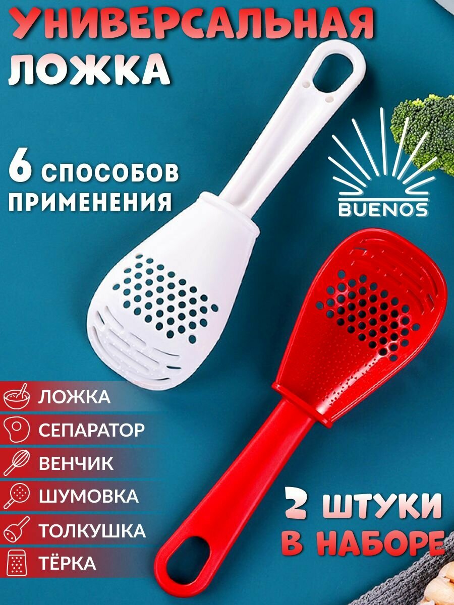 Отзывы на Ложка кулинарная универсальная, 6 в 1 (2 шт), шумовка многофункциональная