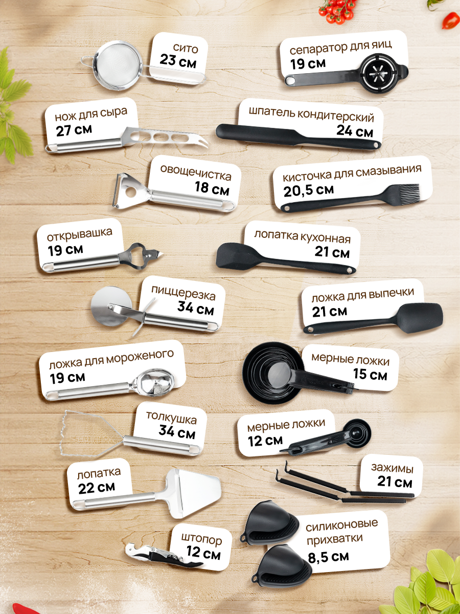 10 цен на Набор кухонных принадлежностей BanzZanas, 43 элемента, 36x23 см, чёрный
