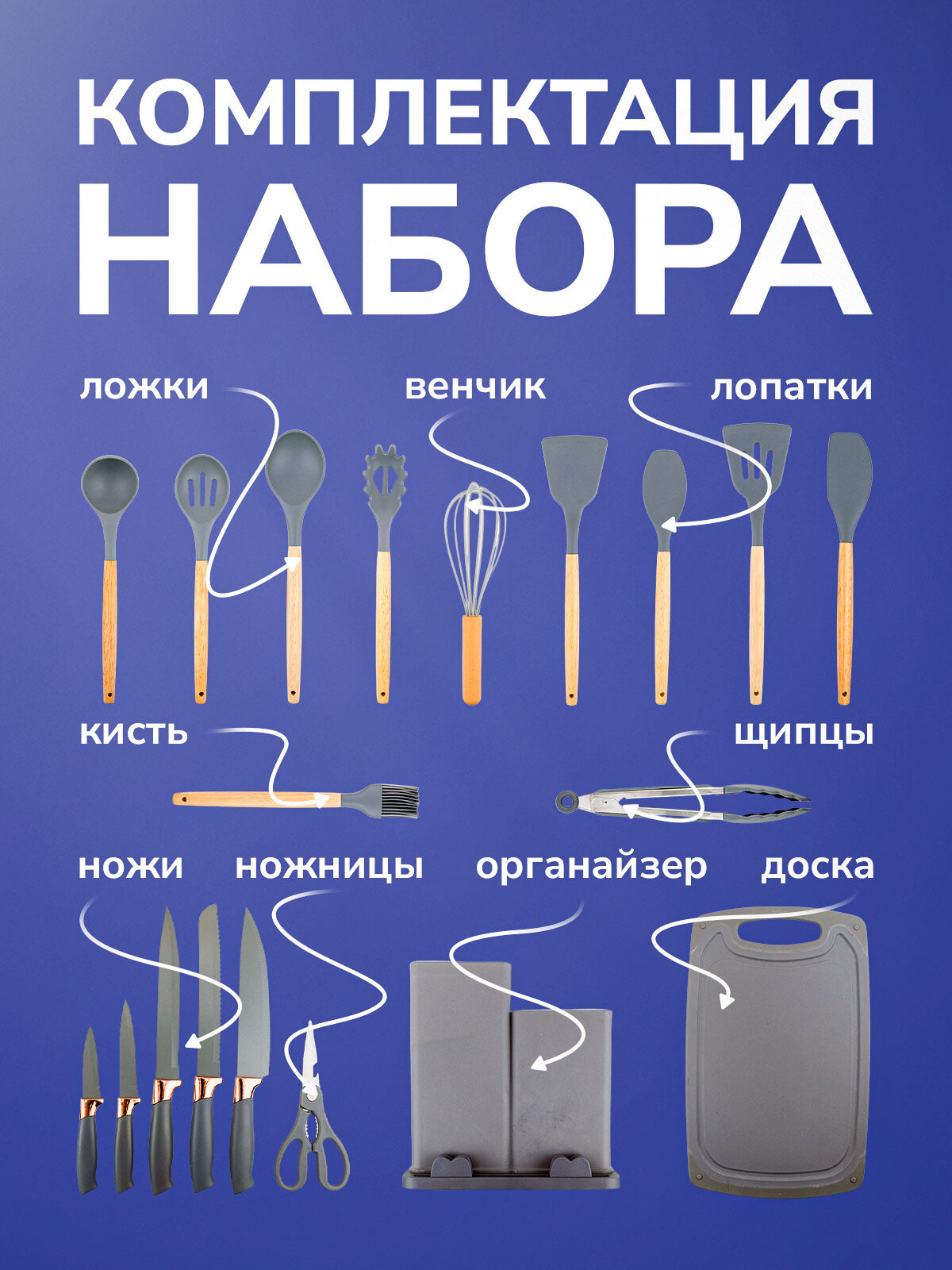 Набор кухонных принадлежностей 19 предметов, серый информация:
