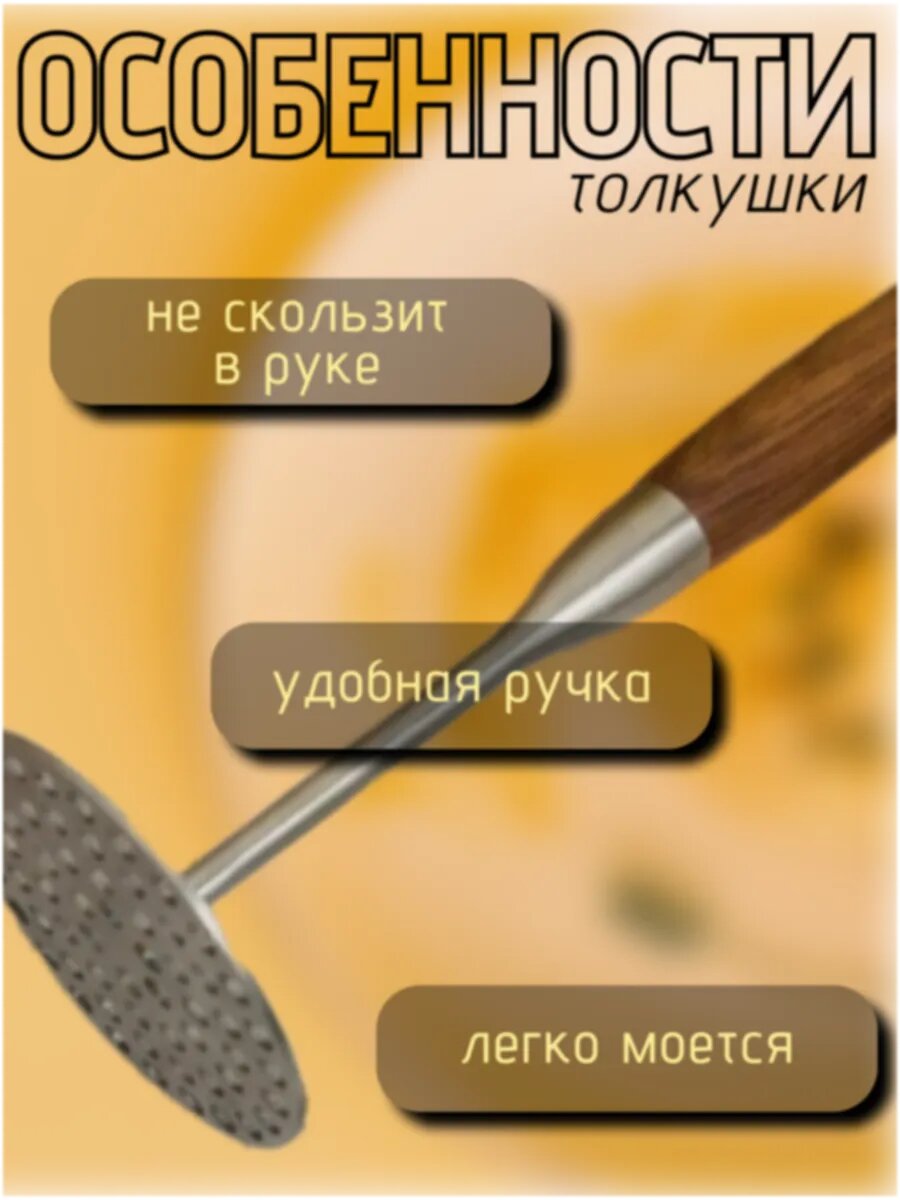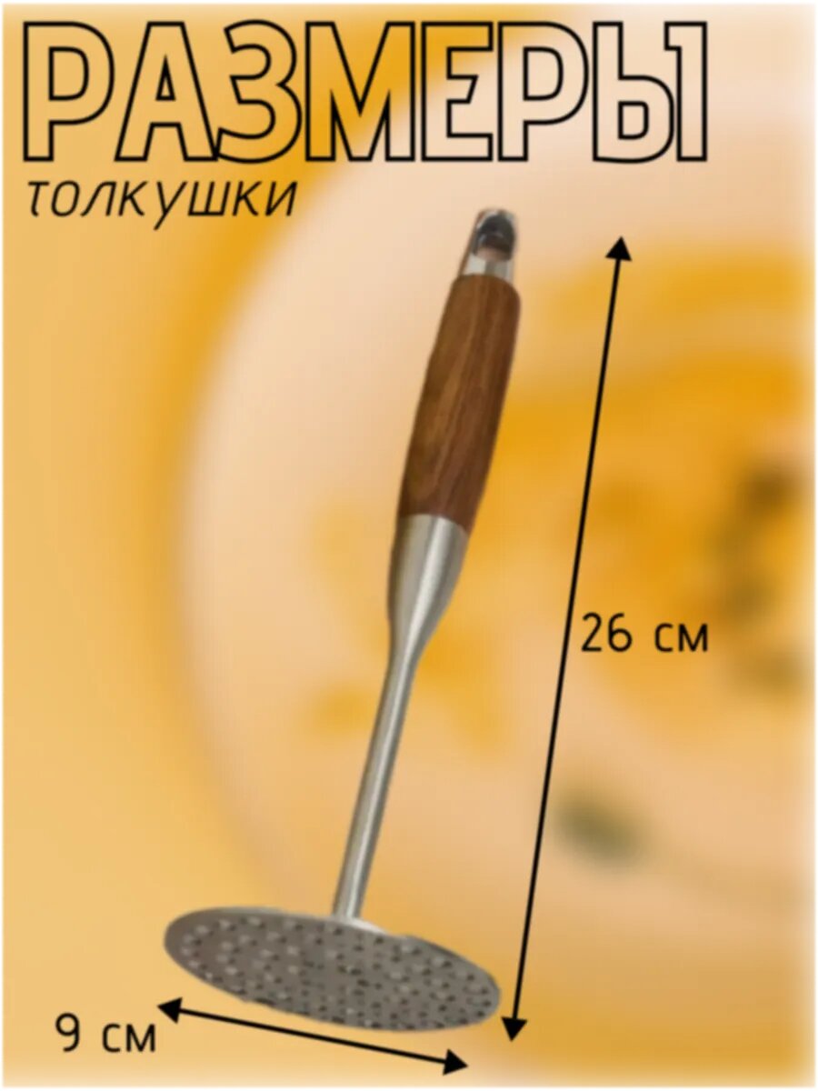 Толкушка для пюре металлическая с деревянной ручкой, длина 26 см информация: