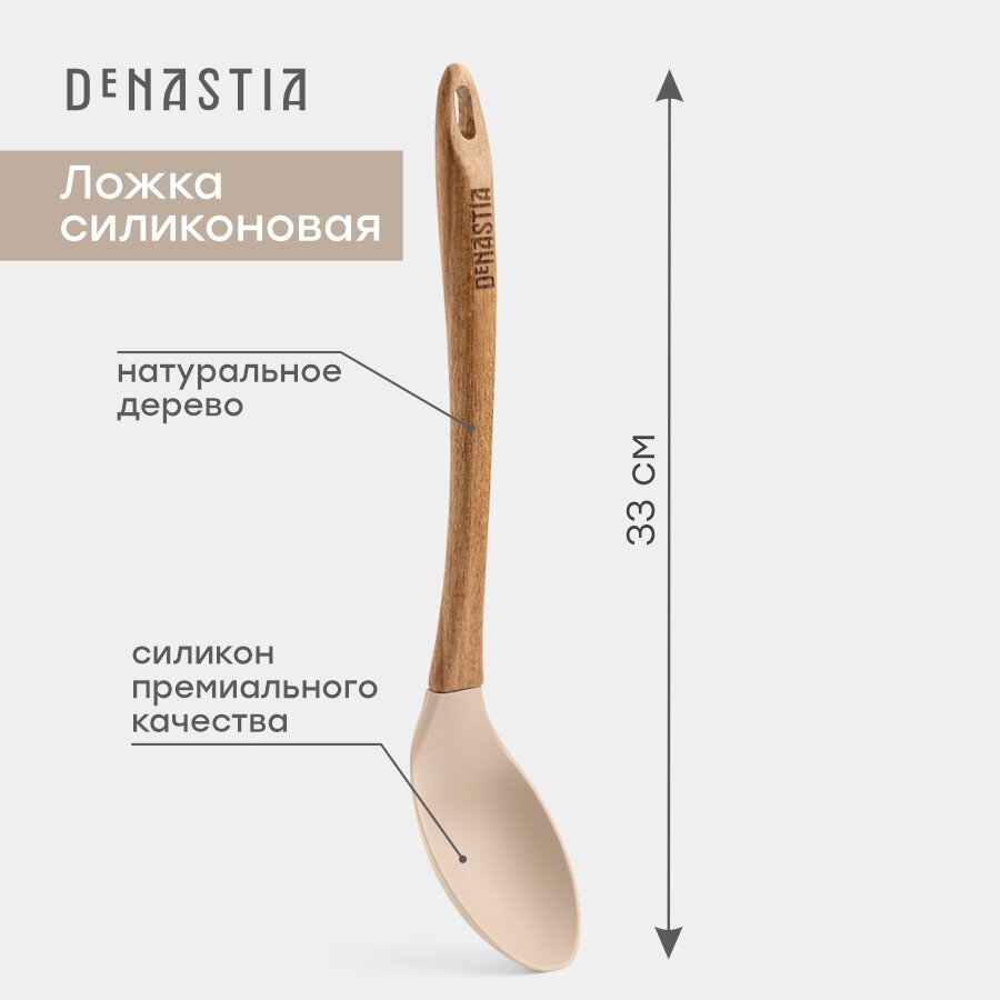 10 цен на Ложка кулинарная DeNASTIA с деревянной ручкой 33x6x1,6см, силикон + акация, цвет бежевый