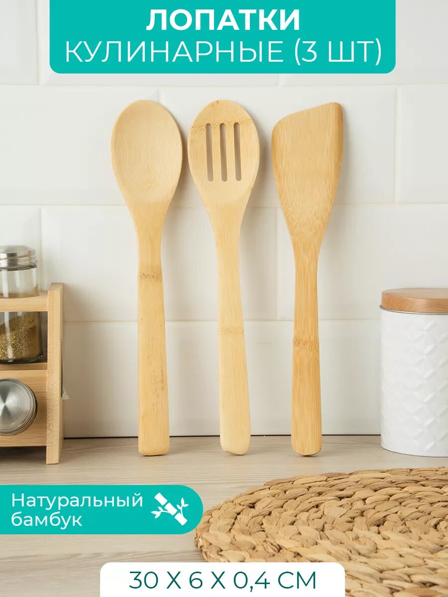 10 цен на Набор кулинарных лопаток - 3 шт, бамбук