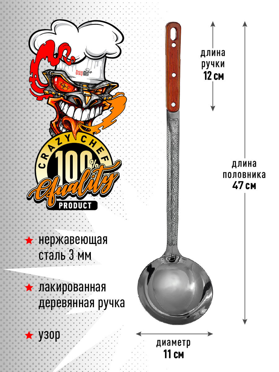 Шумовка и половник узбекские 47 сантиметров набор для казана CRAZY Chef из нержавеющей стали информация: