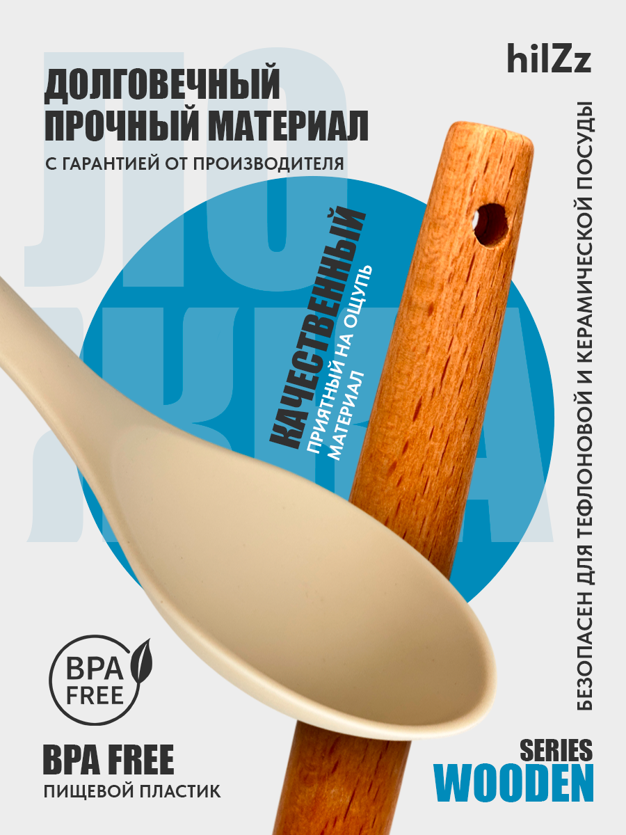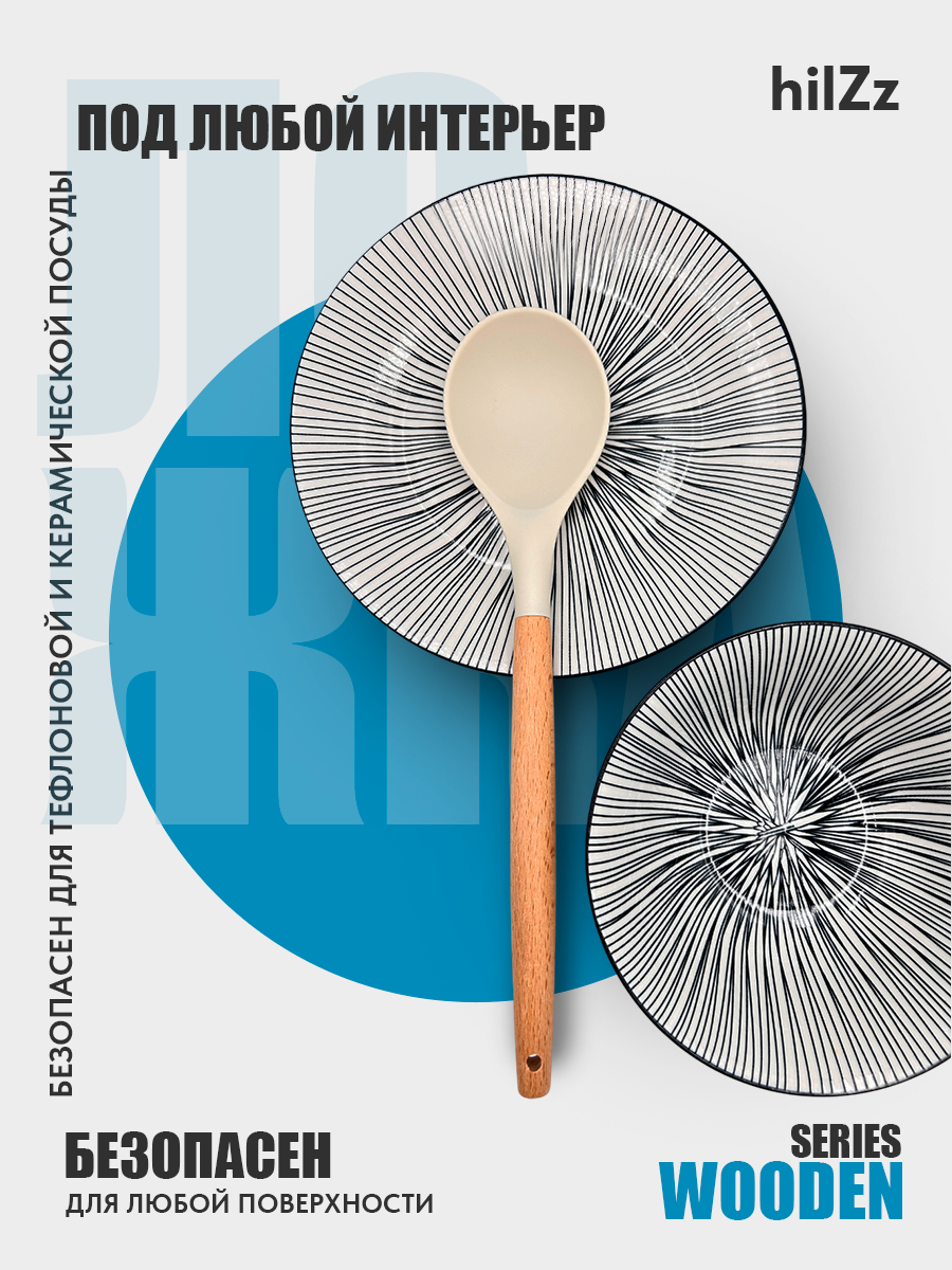 Ложка кулинарная силиконовая с деревянной ручкой hilZz 32 см, молочная информация: