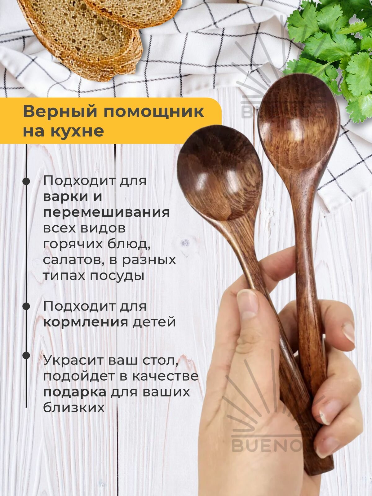 10 цен на Ложка деревянная кулинарная 18 см (2 шт), круглые деревянные ложки для взрослых и детей
