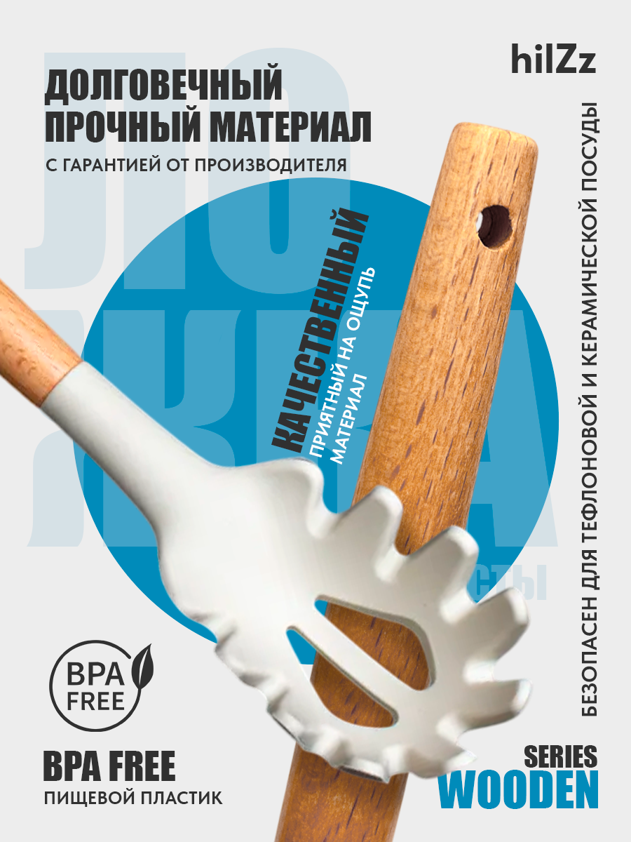 Ложка для спагетти из силикона и дерева hilZz 32 см, молочный информация:
