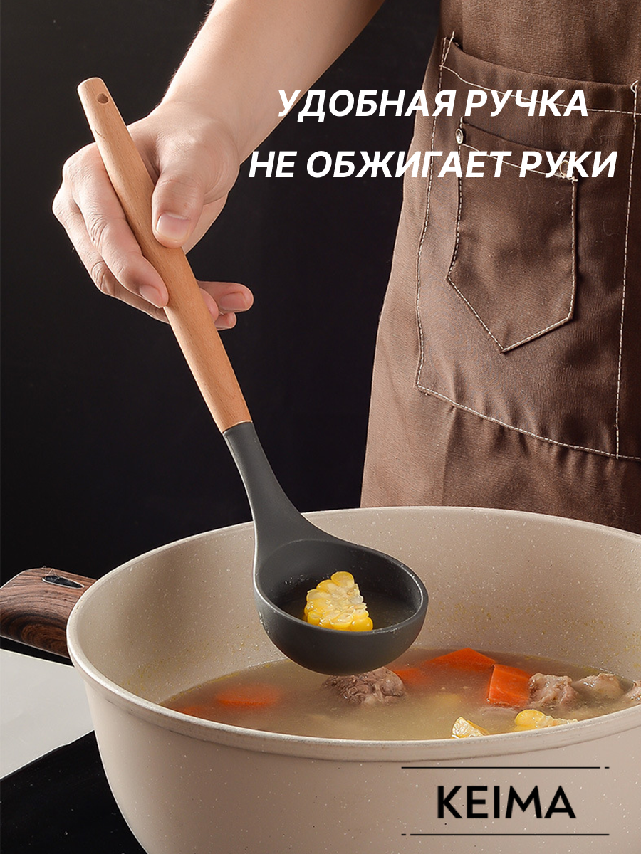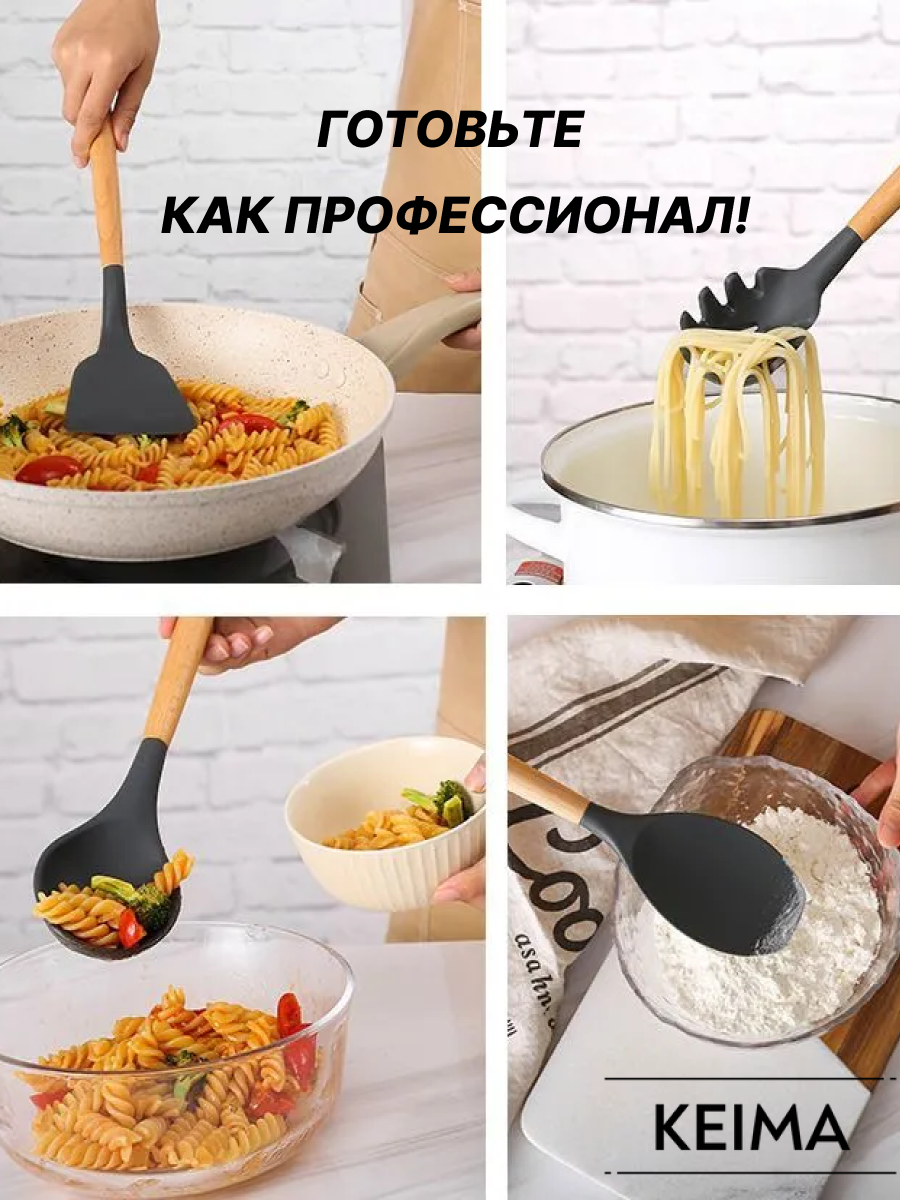 Отзывы на Набор кухонных принадлежностей из силикона и бамбука, 12 шт с подставкой, цвет черный