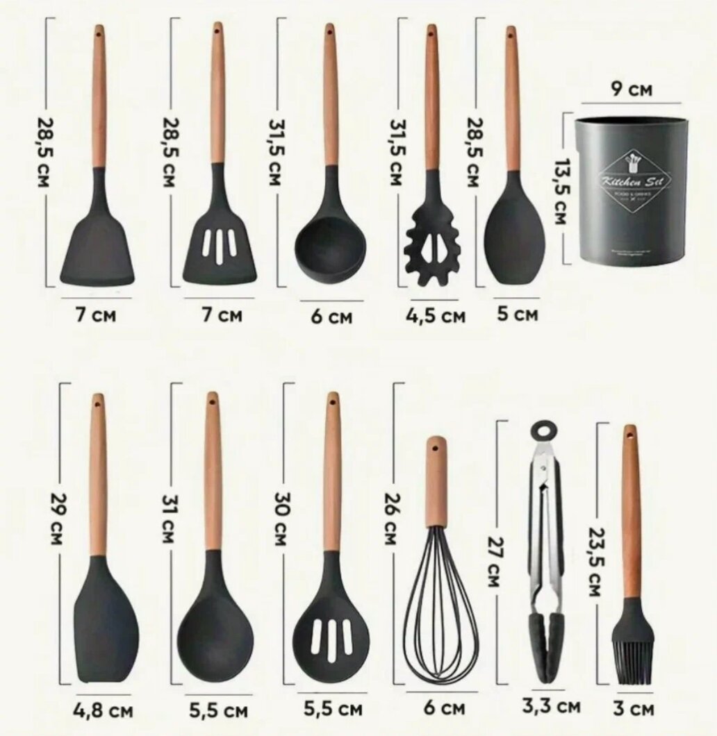 10 цен на Набор кухонных принадлежностей силиконовый с подставкой, темно- серый