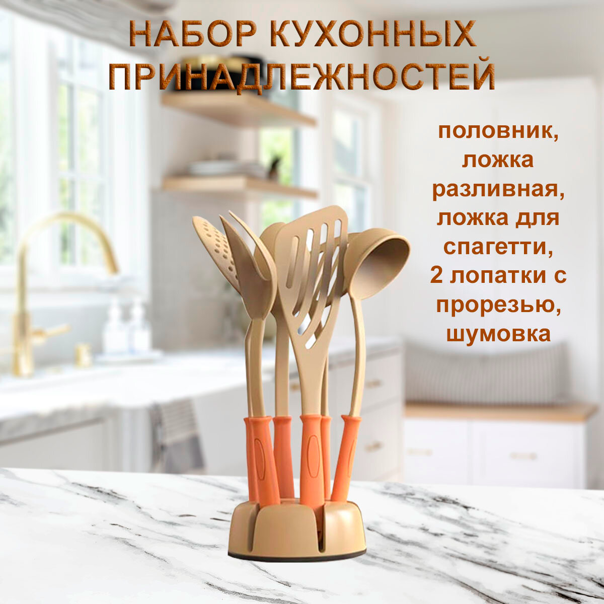 Набор кухонных принадлежностей, кухонный набор для салатов, пасты, супа, мяса, 6 предметов, бежевый, навеска информация: