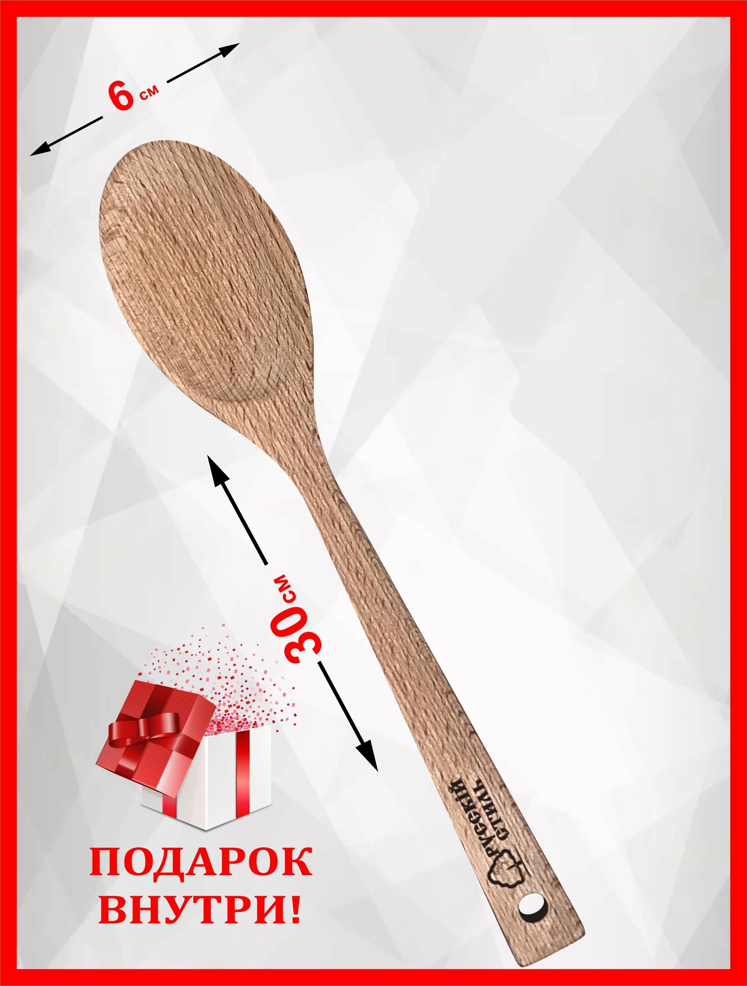 Отзывы на Ложка деревянная кухонная Русскiй стиль, Премиум 30 х 6 х 0,7 см, бук