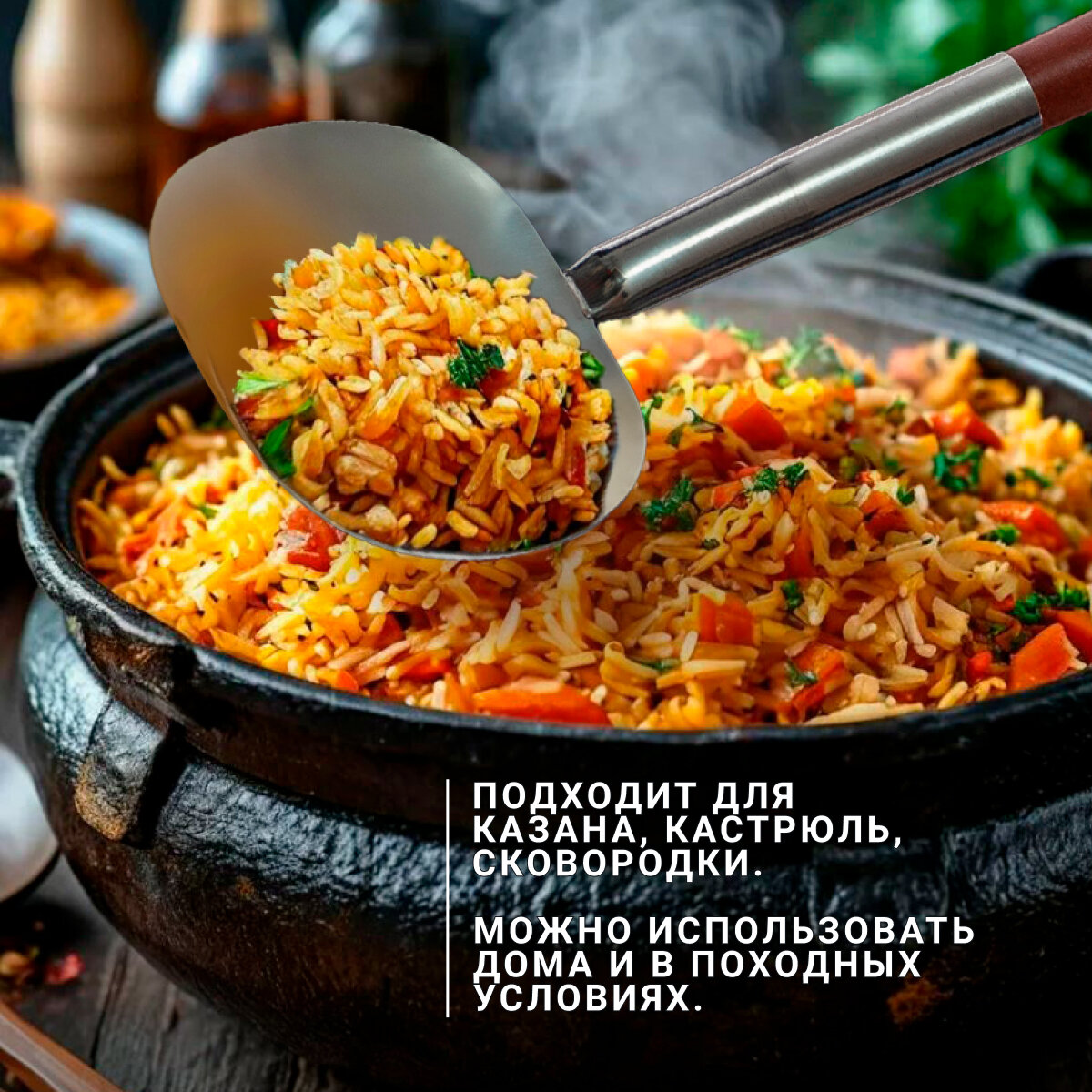Ложка для риса СКДрево из тикового дерева с короткой ручкой, 19Х8 см, 1шт