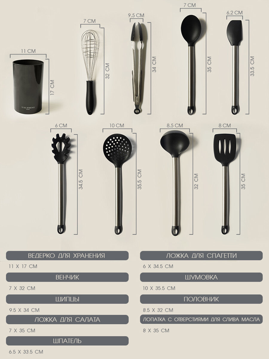 Набор кухонных принадлежностей с подставкой 33 Element Home информация: