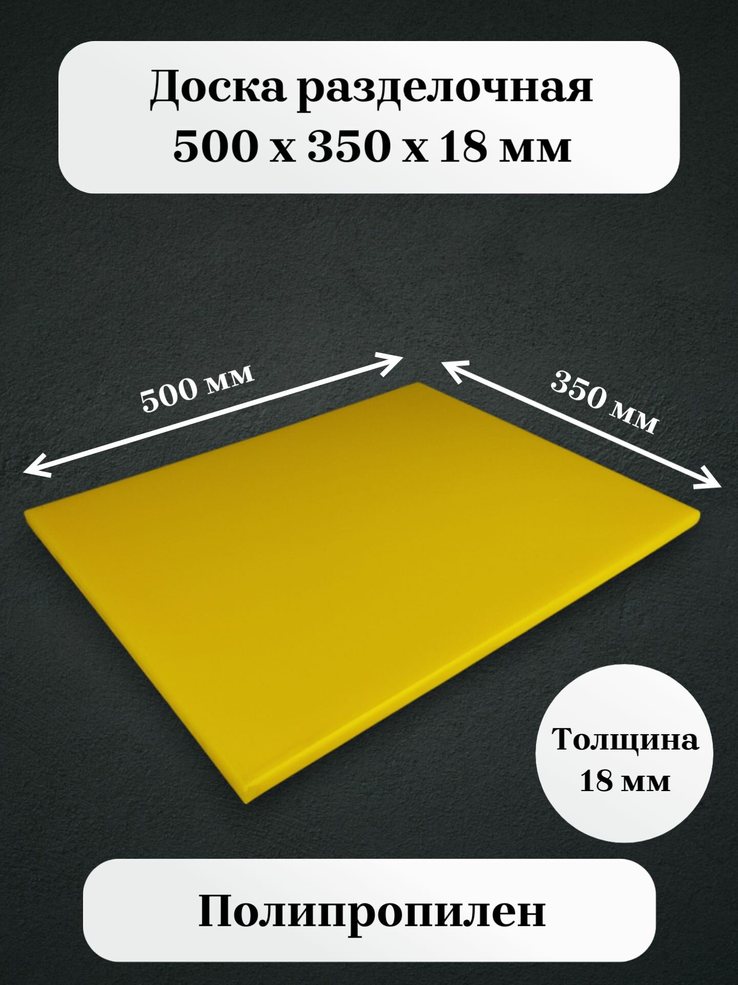 Доска разделочная полипропиленовая 500*350*18мм желтая (профессиональная) информация: