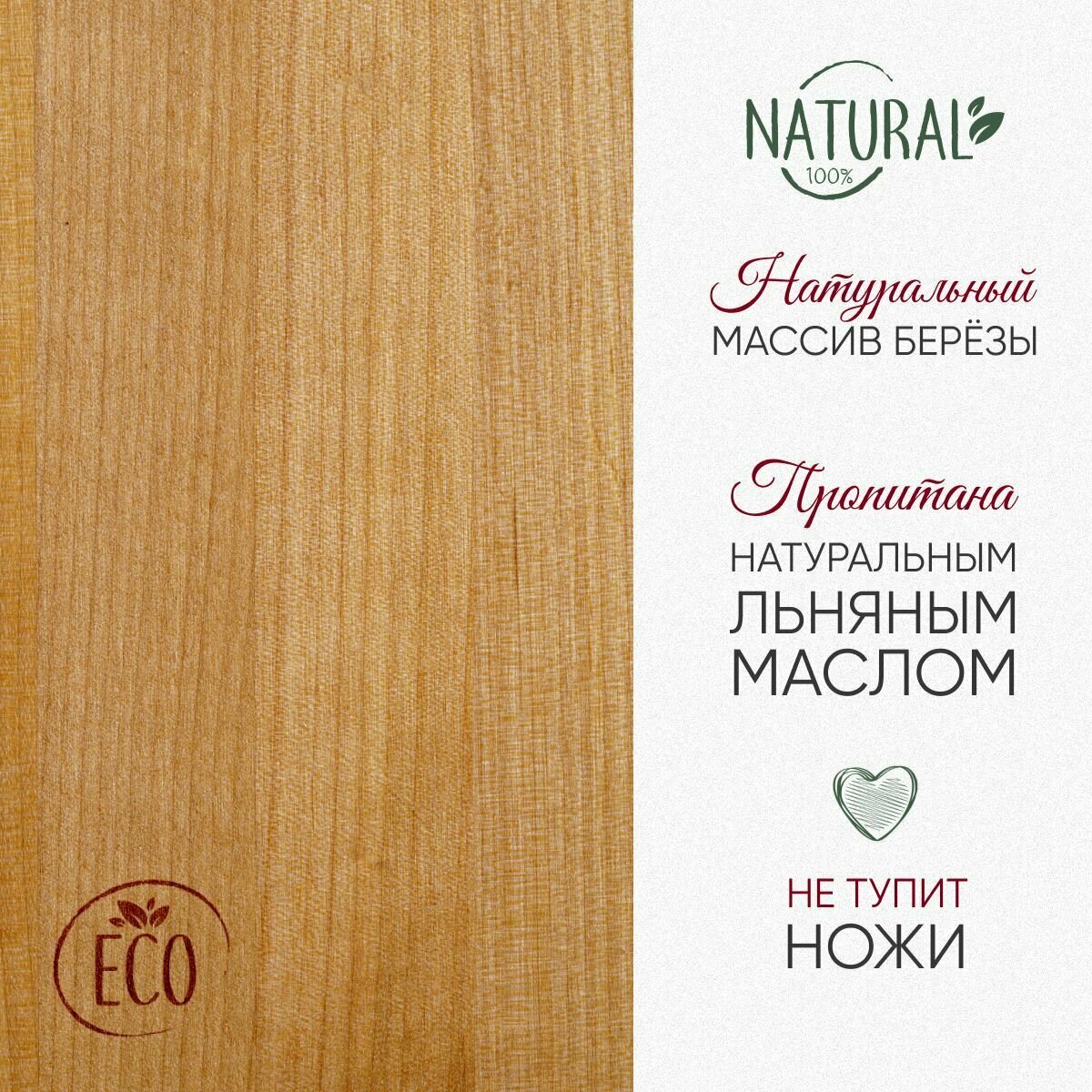 Reliable Solution / Большая деревянная разделочная доска из березы на кухню с упором в столешницу / доска разделочная деревянная большая 53х46 см информация: