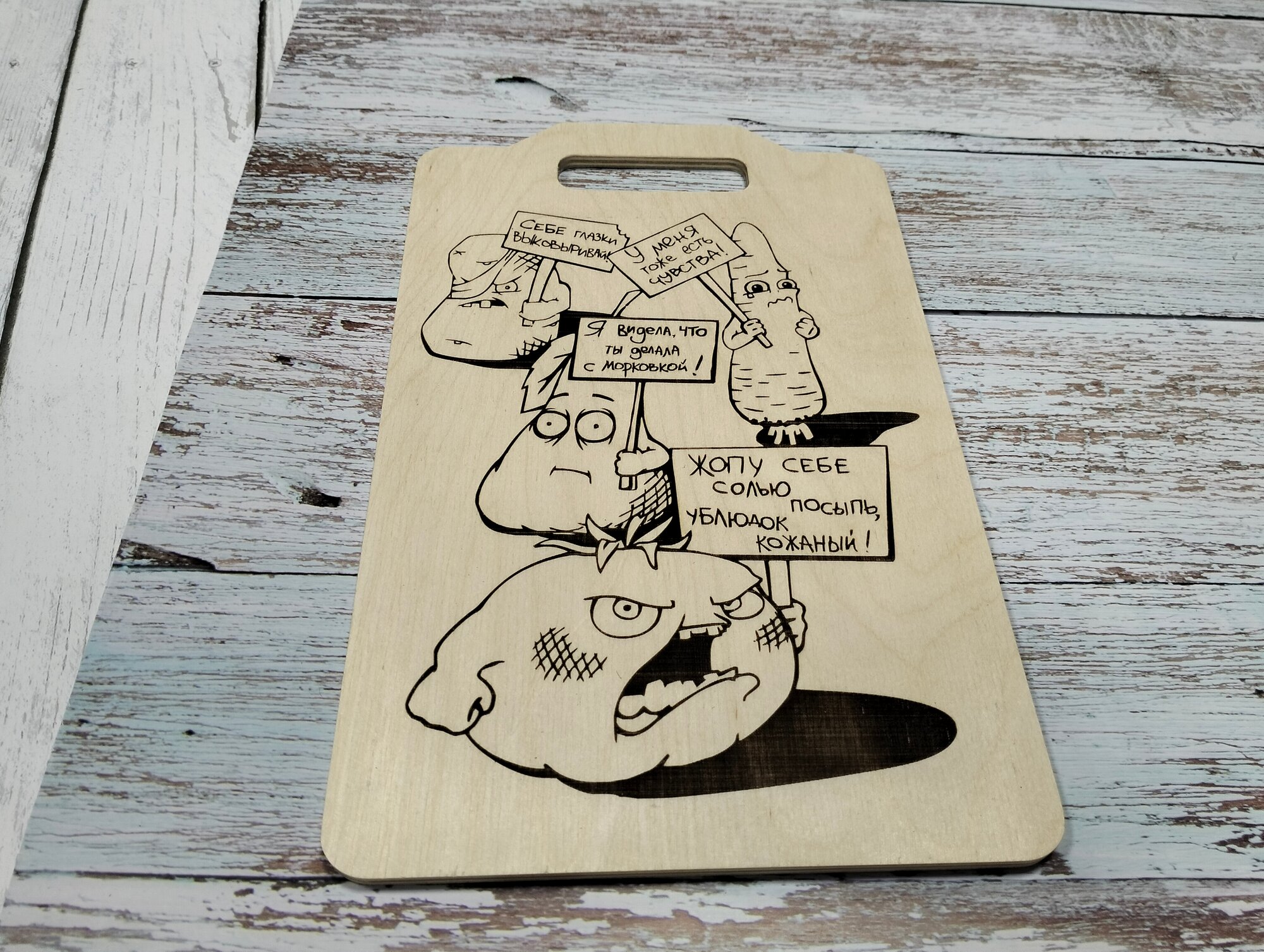 Доска разделочная гравированная "Овощи с приколом ' 29х18 см, доска для кухни с овощным приколом . 500 ₽
