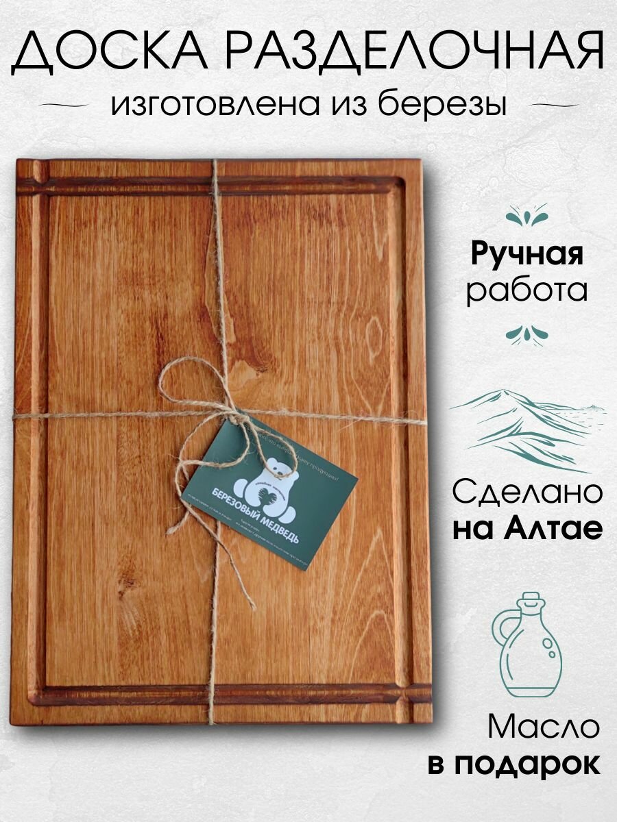 Разделочная доска деревянная, из березы, ручная работа 30x40 см информация:
