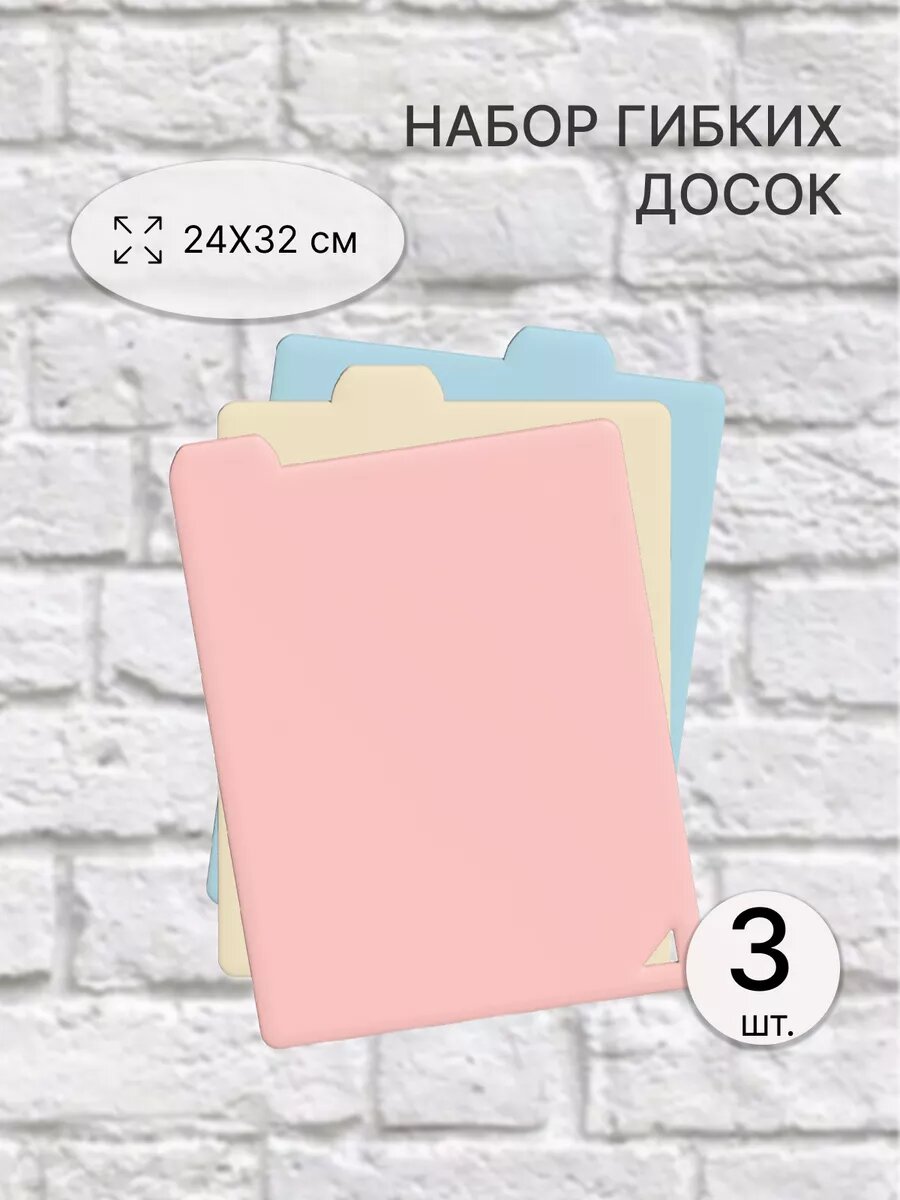 Разделочные доски Пластмаркет, 3шт, гибкие, двухсторонние, пластик, полипропилен информация: