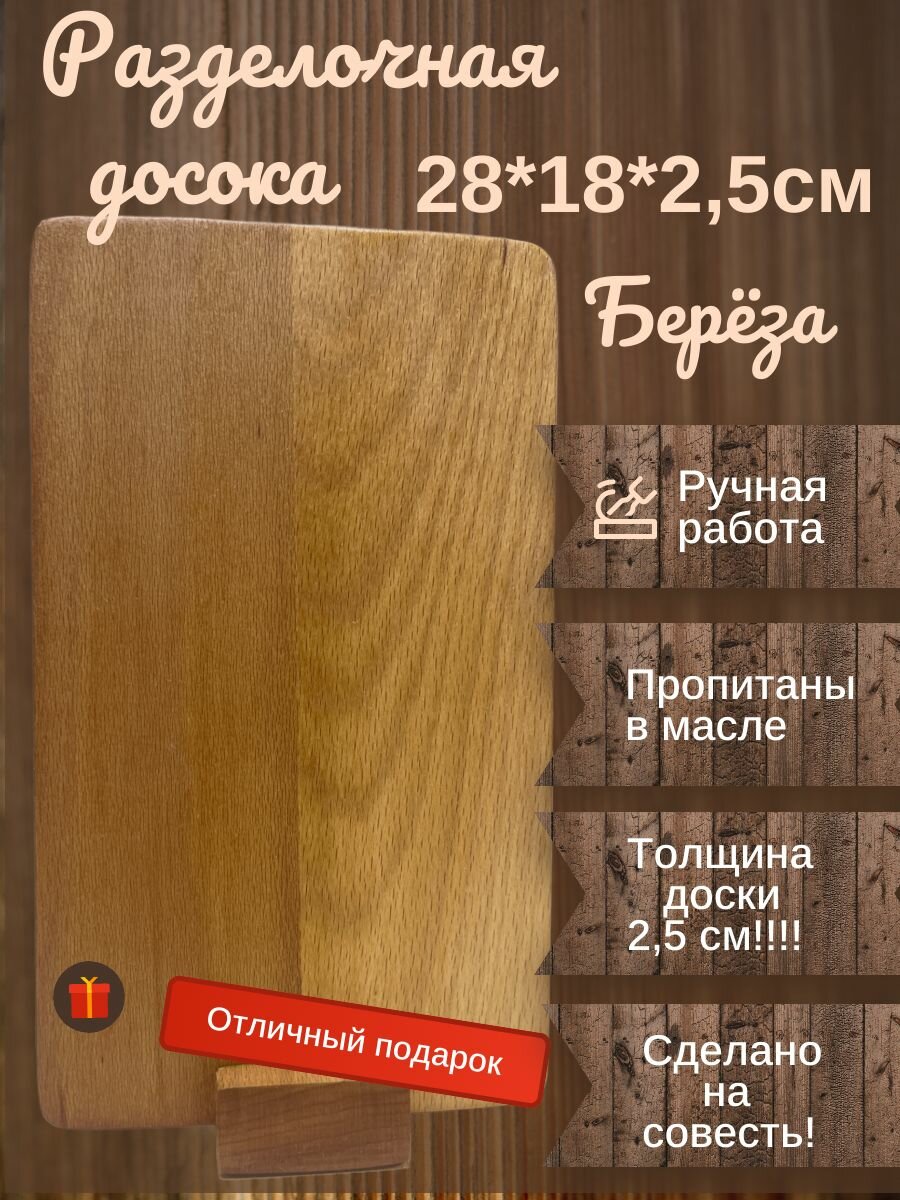 Отзывы на Разделочная доска, дерево, двухсторонняя, береза, 28х18х2.5см пропитано в масле