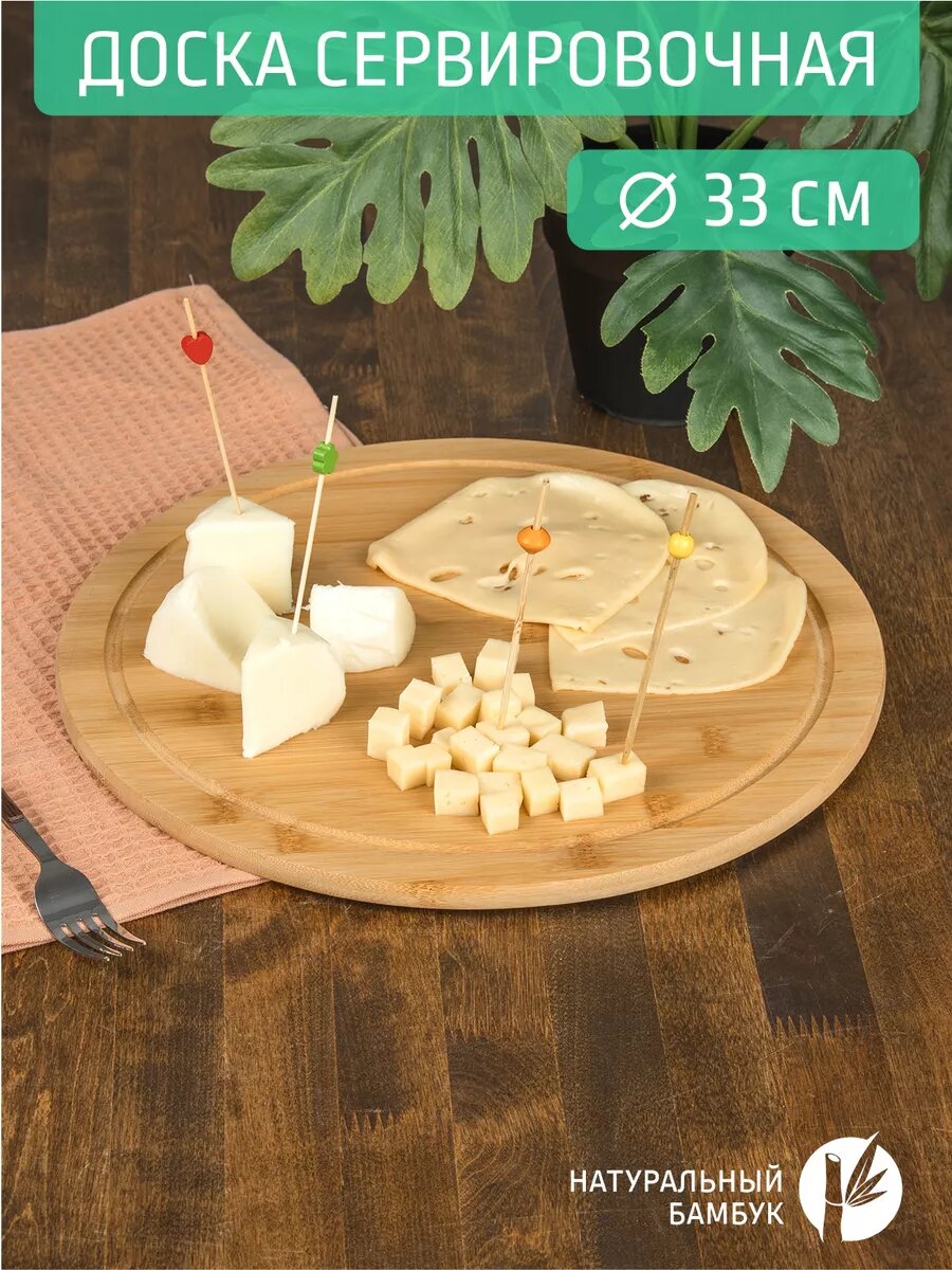 10 цен на Доска для сервировки 33*33*1 см, бамбук