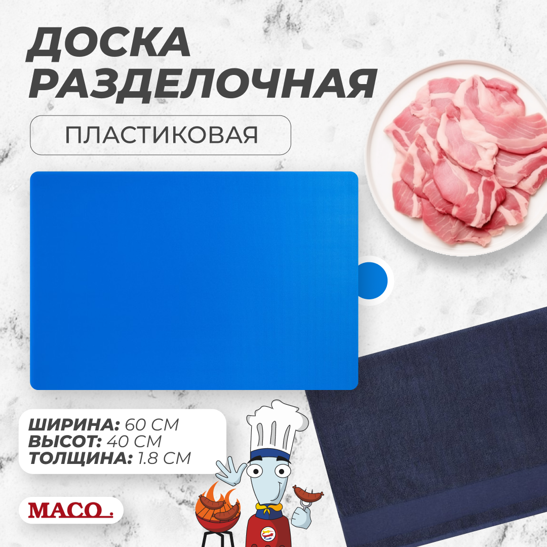 Отзывы на Разделочная доска Maco 600х400х18 синего цвета, пластик, двухсторонняя, нескользящая