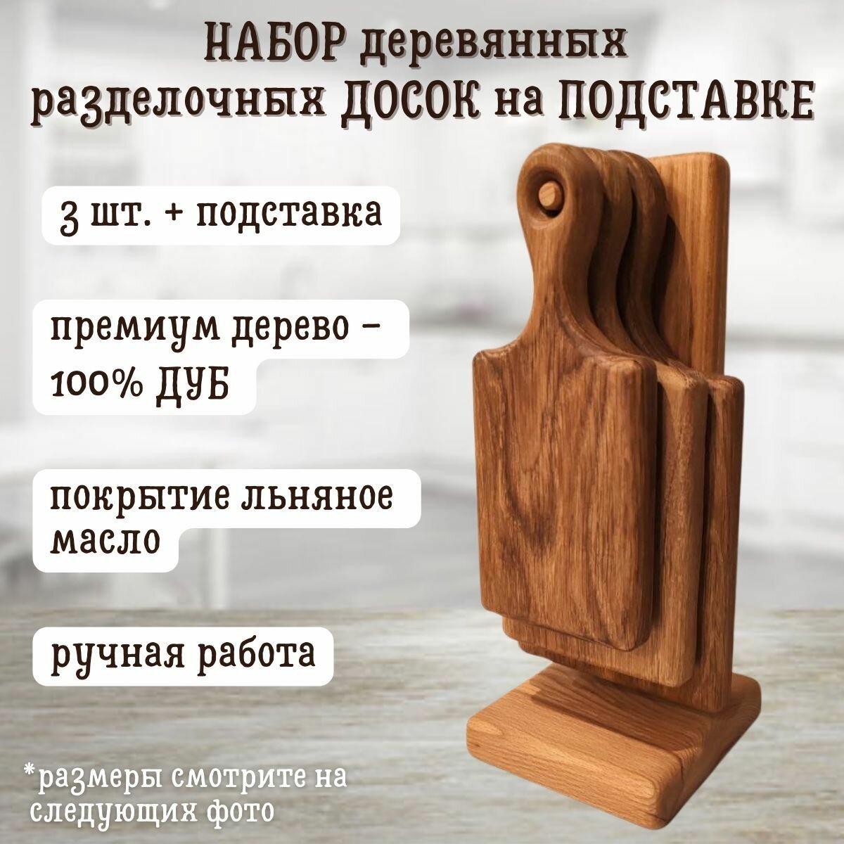 Доска разделочная деревянная из дуба PREMIUM набор 3 шт. на подставке информация: