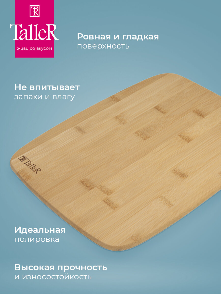 Доска разделочная из дерева TalleR TR-52228, 35х25х0.9 см, бамбук информация: