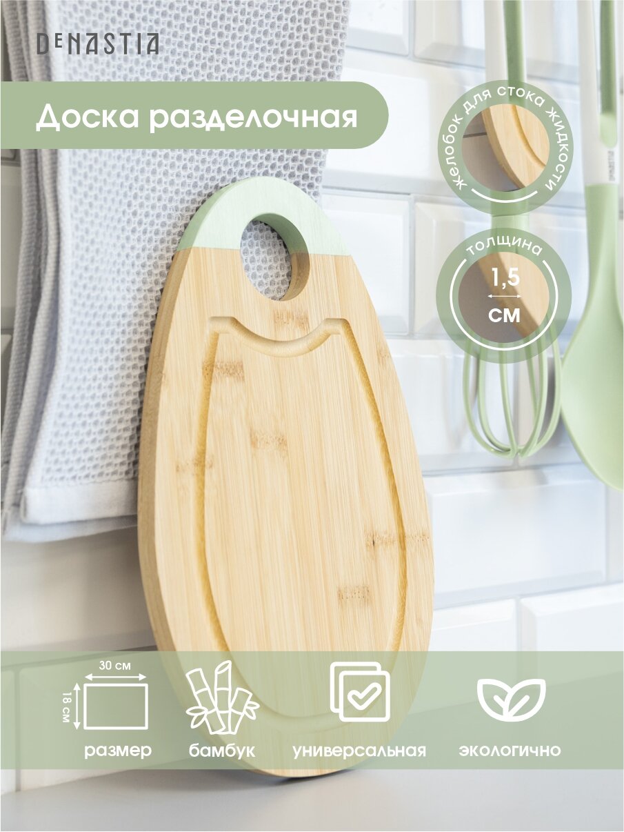 Отзывы на Доска разделочная DeNASTIA бамбук c цветным краем 30x18x1,5см, цвет мятный KB00020