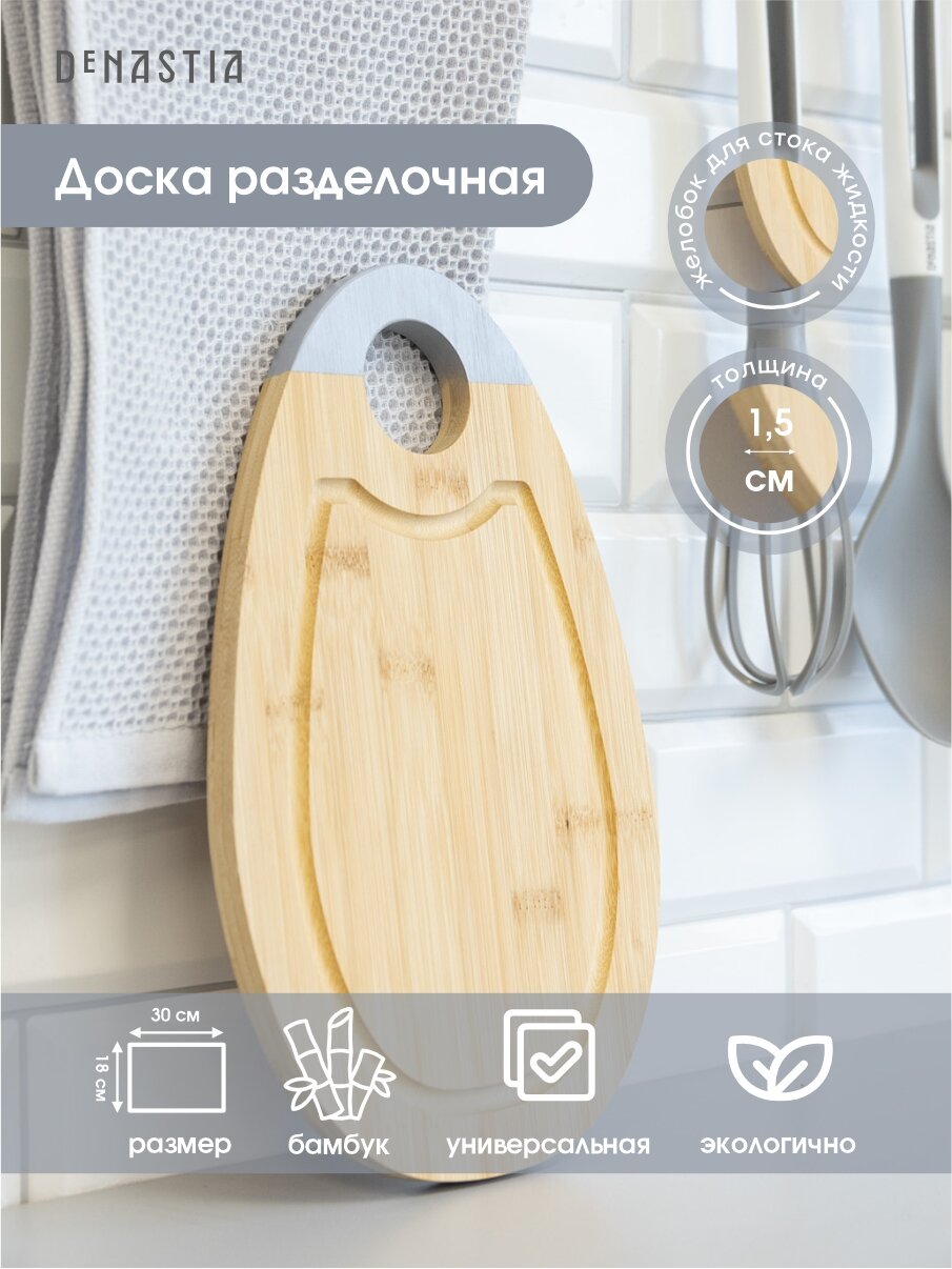 Отзывы на Доска разделочная DeNASTIA бамбук c цветным краем 30x18x1,5см, цвет серый KB00022