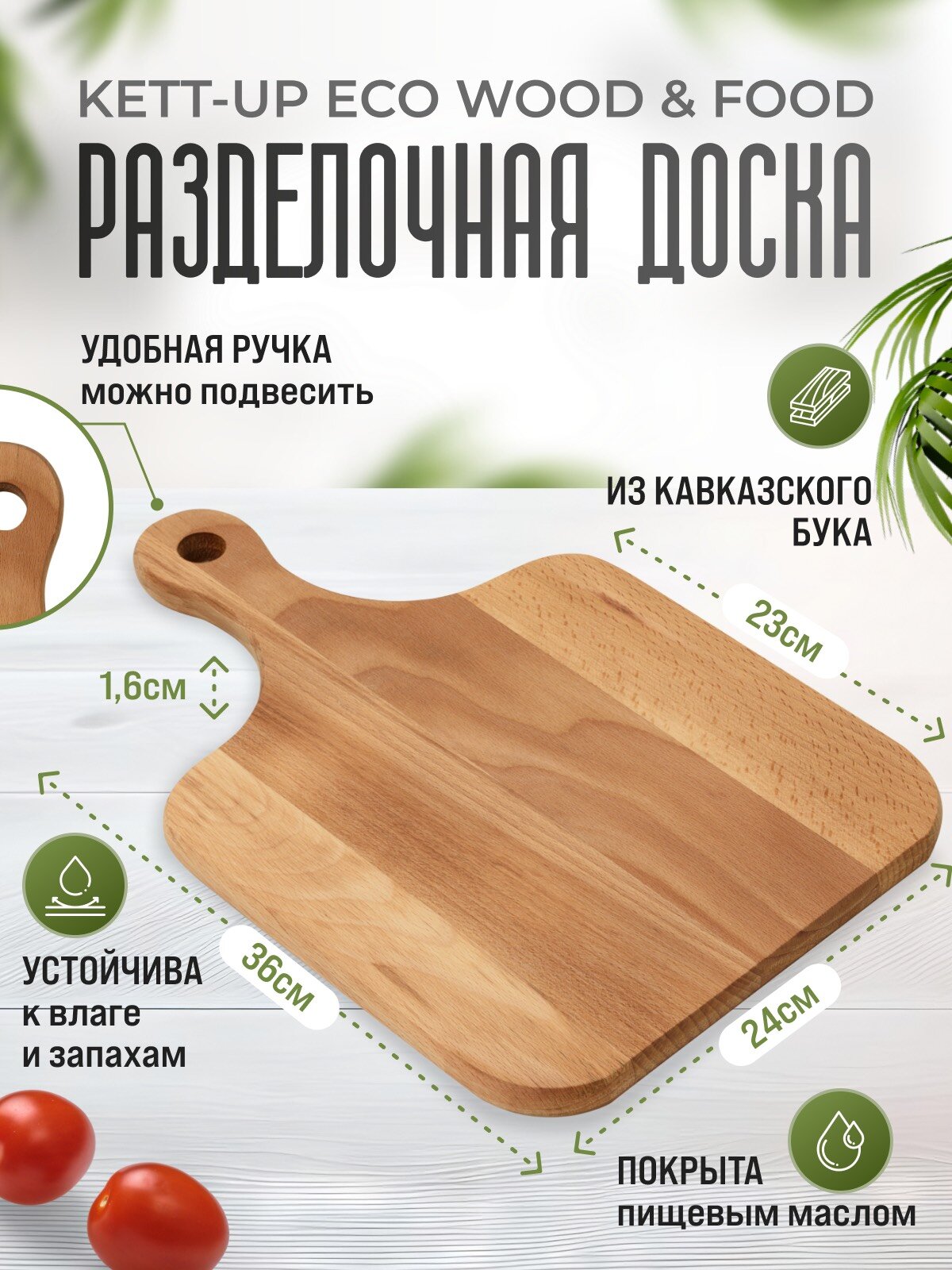 Разделочная доска KETT-UP ECO WOOD & FOOD 24*36см классическая деревянная информация: