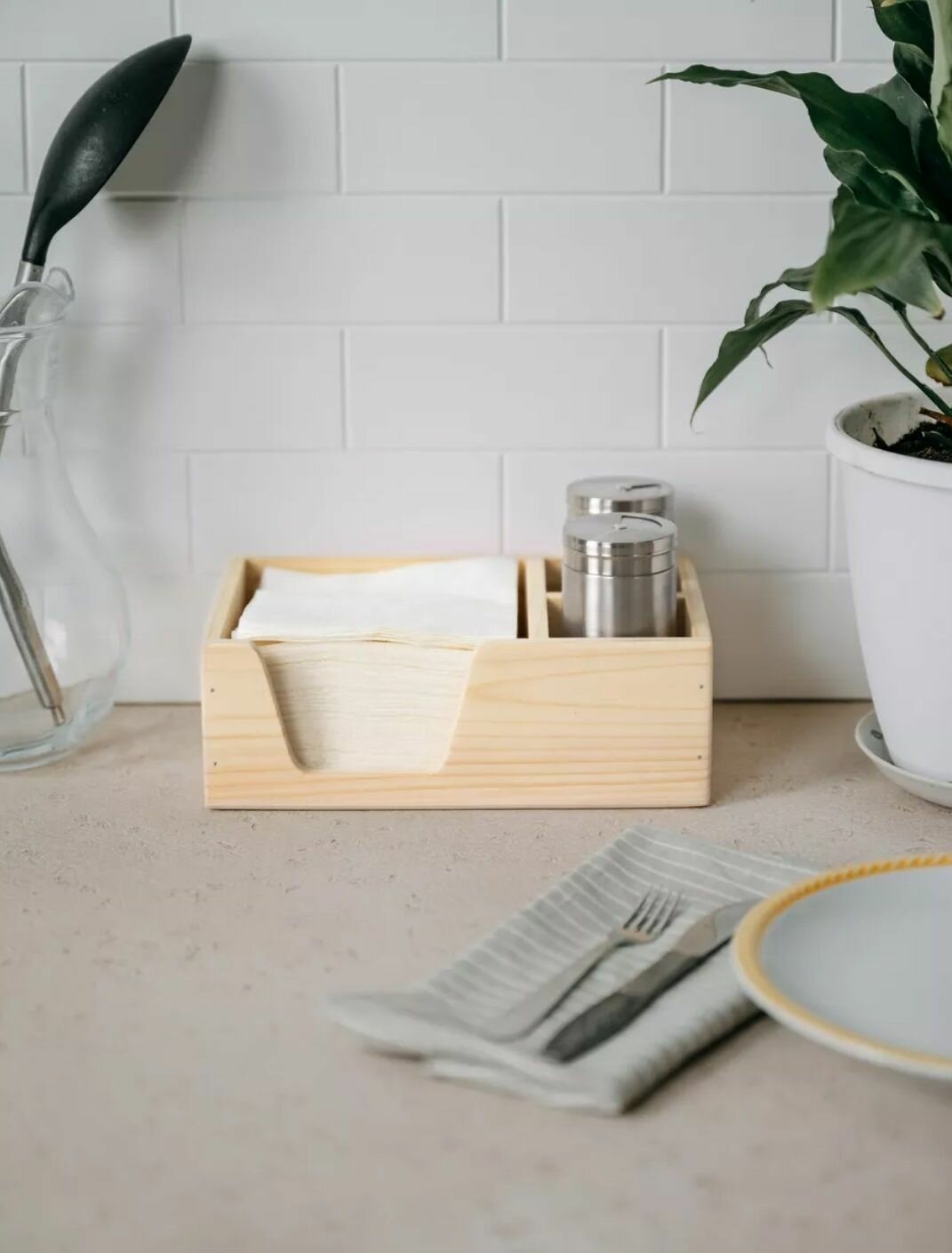 Отзывы на Салфетница на стол с подставкой под соль и перец деревянная кухонная