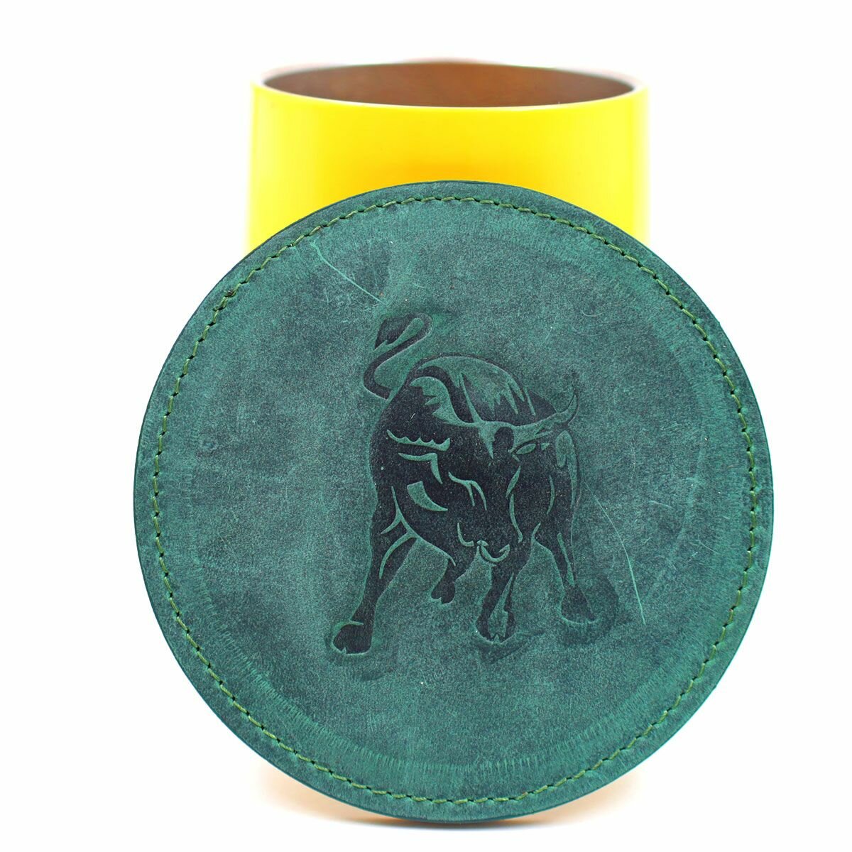 Кожаный подстаканник - бирдекель, подставка под кружку c тиснением "Телец", Frongoch Taurus Pine, J.Audmorr информация: