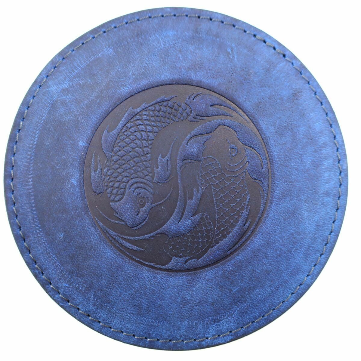 Кожаный подстаканник - бирдекель, подставка под кружку c тиснением "Рыбы", Frongoch Pisces Cobalt, J.Audmorr информация: