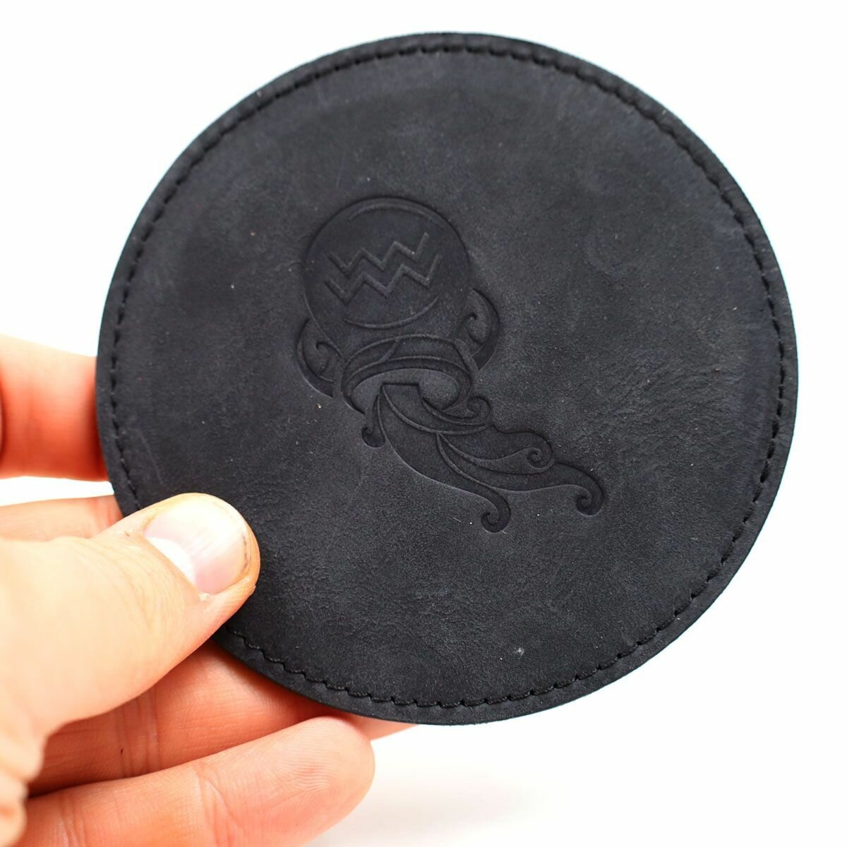 Кожаный подстаканник - бирдекель, подставка под кружку c тиснением "Водолей", Frongoch Aquarius Noir, J.Audmorr информация: