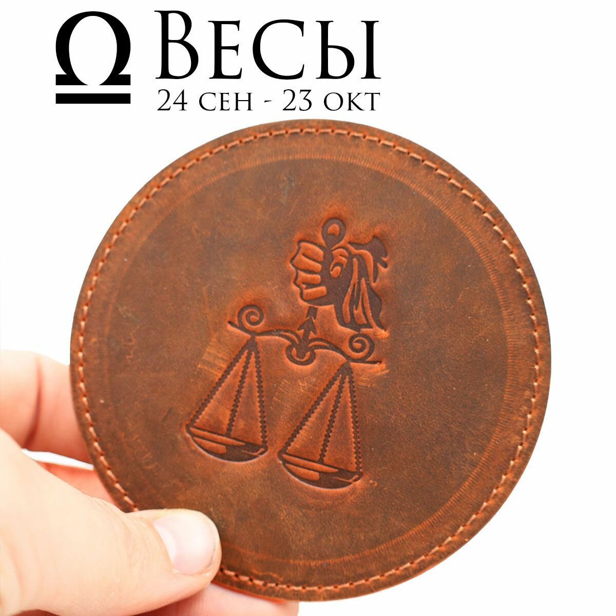 10 цен на Кожаный подстаканник - бирдекель, костер под кружку c тиснением "весы", Frongoch Libra Cognac, J.Audmorr