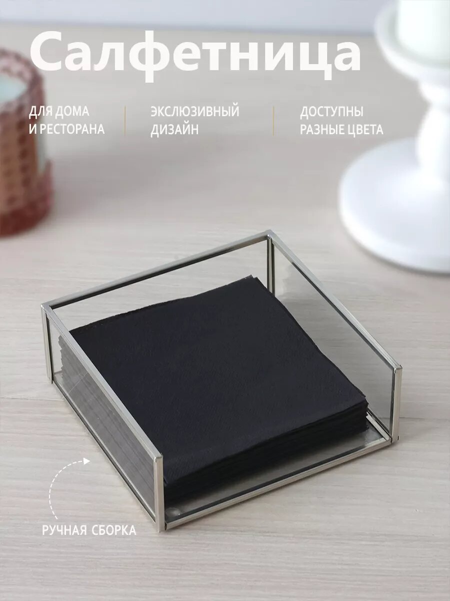 Салфетница на стол кухонная интерьерная стеклянная серебро информация: