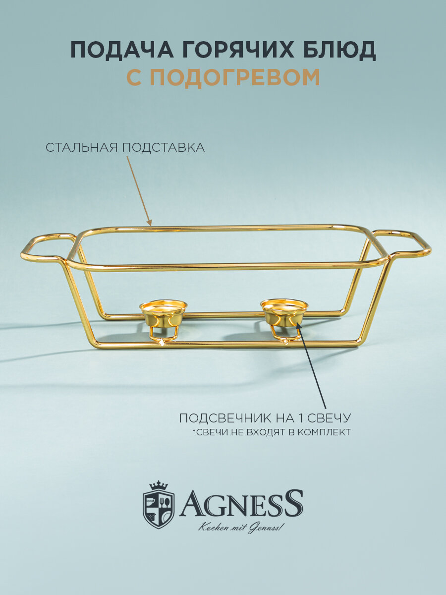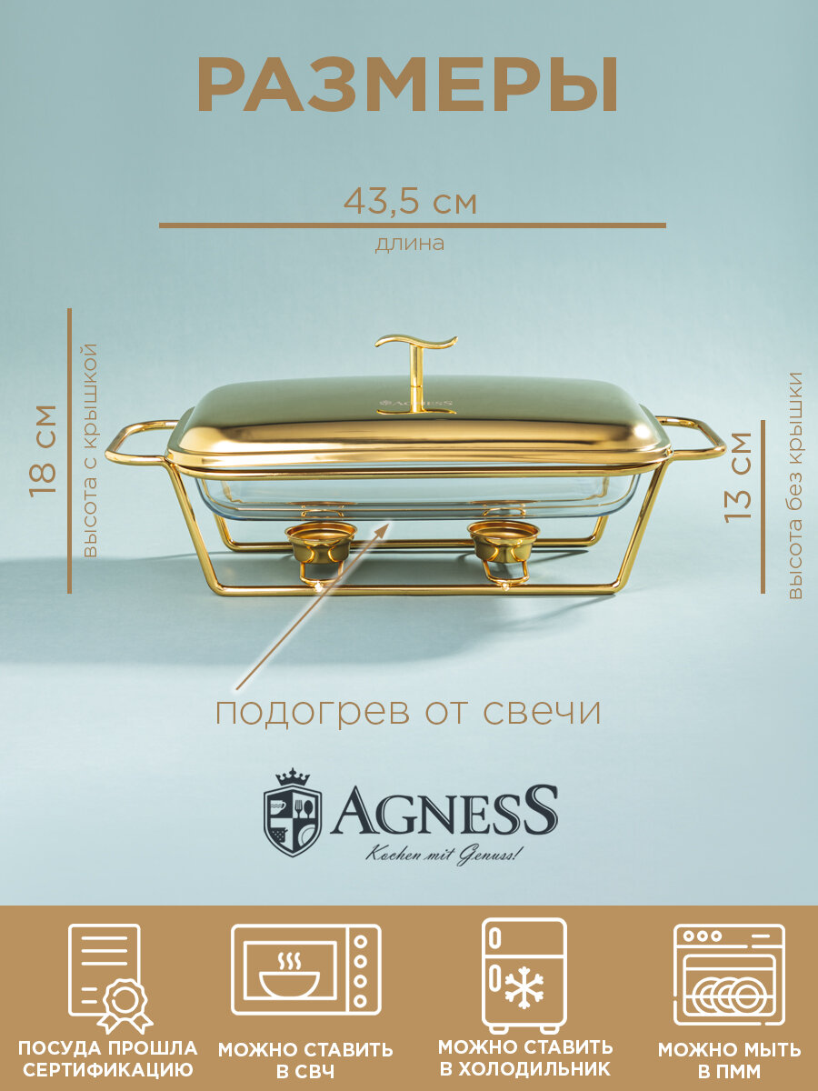 Мармит Agness "Gold", с крышкой, с подогревом, 2.2 л, стеклянный, с крышкой информация: