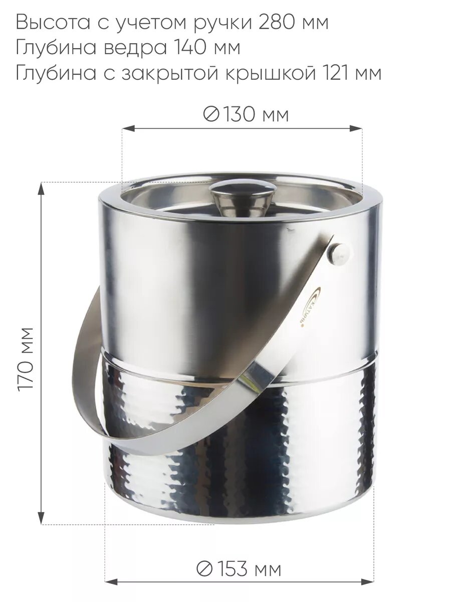 Ведро для льда 1,5 л двухстенное Д15,3*16,3 см информация: