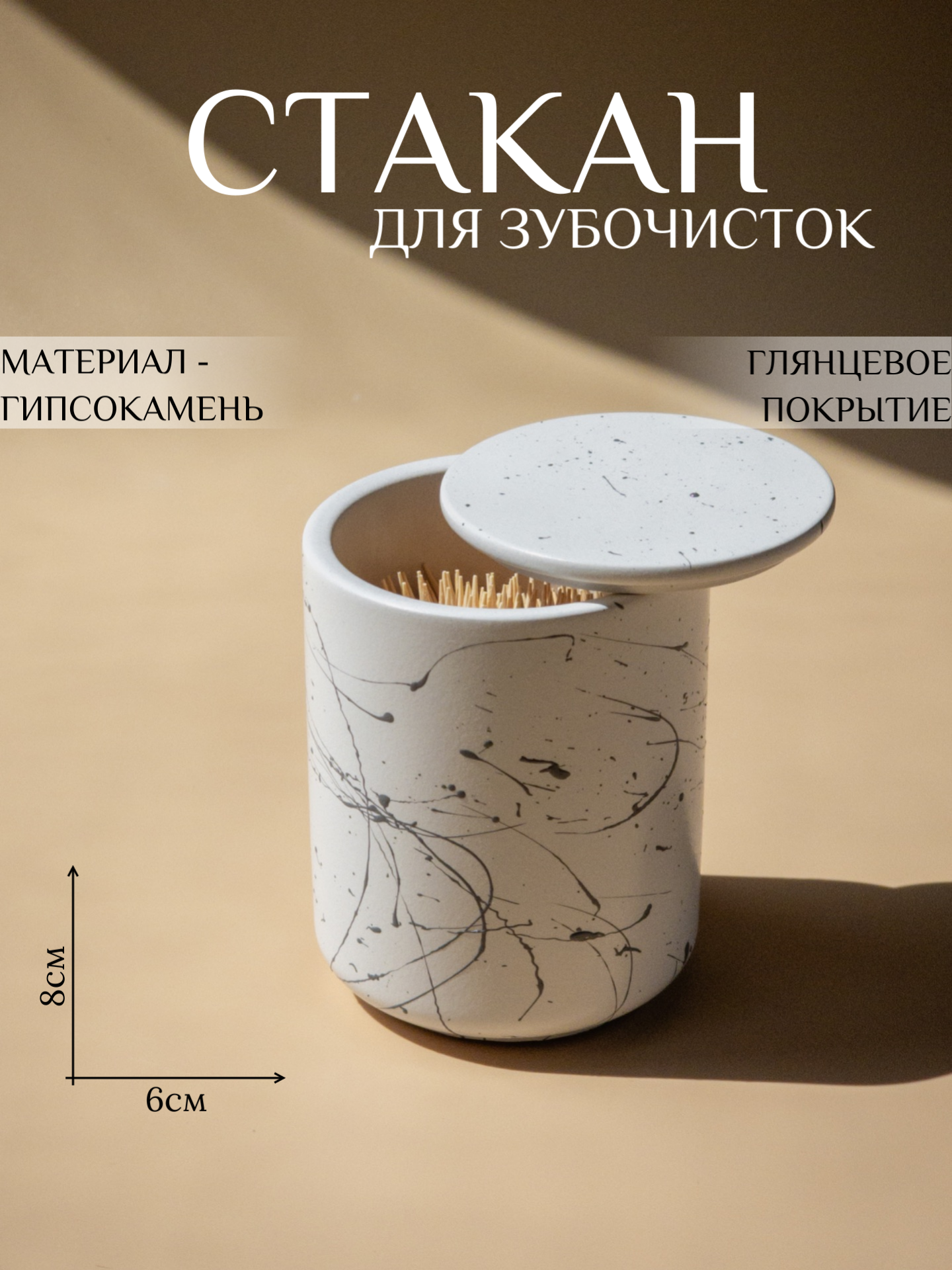 Отзывы на Стакан с крышкой Ashes Deco, ёмкость для зубочисток, 8x6см, белый с серыми брызгами