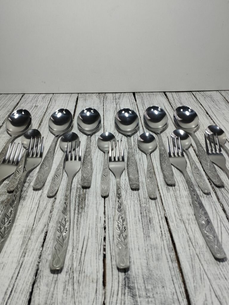 Набор столовых приборов, ложка, вилка, чайная ложка, на 6 персон. Нытва. Серия уралочка информация: