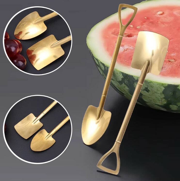 Отзывы на Набор чайных ложек Лопаты 2 шт золотистые, десертные, для чая, кофе, столовые приборы сувенирные, подарочный набор