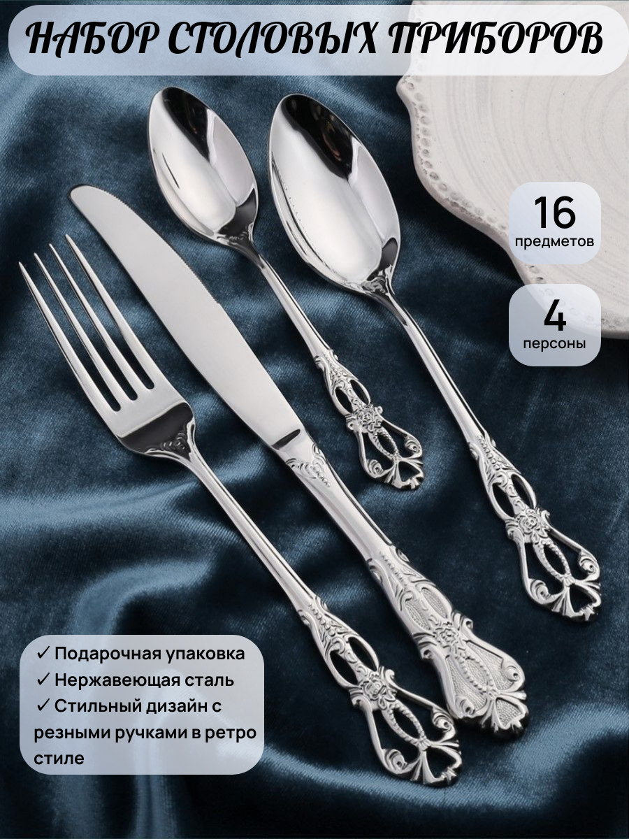 Мы выбрали 10 лучших цен на Набор столовых приборов из 16 предметов на 4 персон, резное серебро.. Перед тем как купить Набор столовых приборов из 16 предметов на 4 персон, резное серебро. посмотрите найденные предложения из Яндекс Маркета и других сайтов на основе XML фидов.