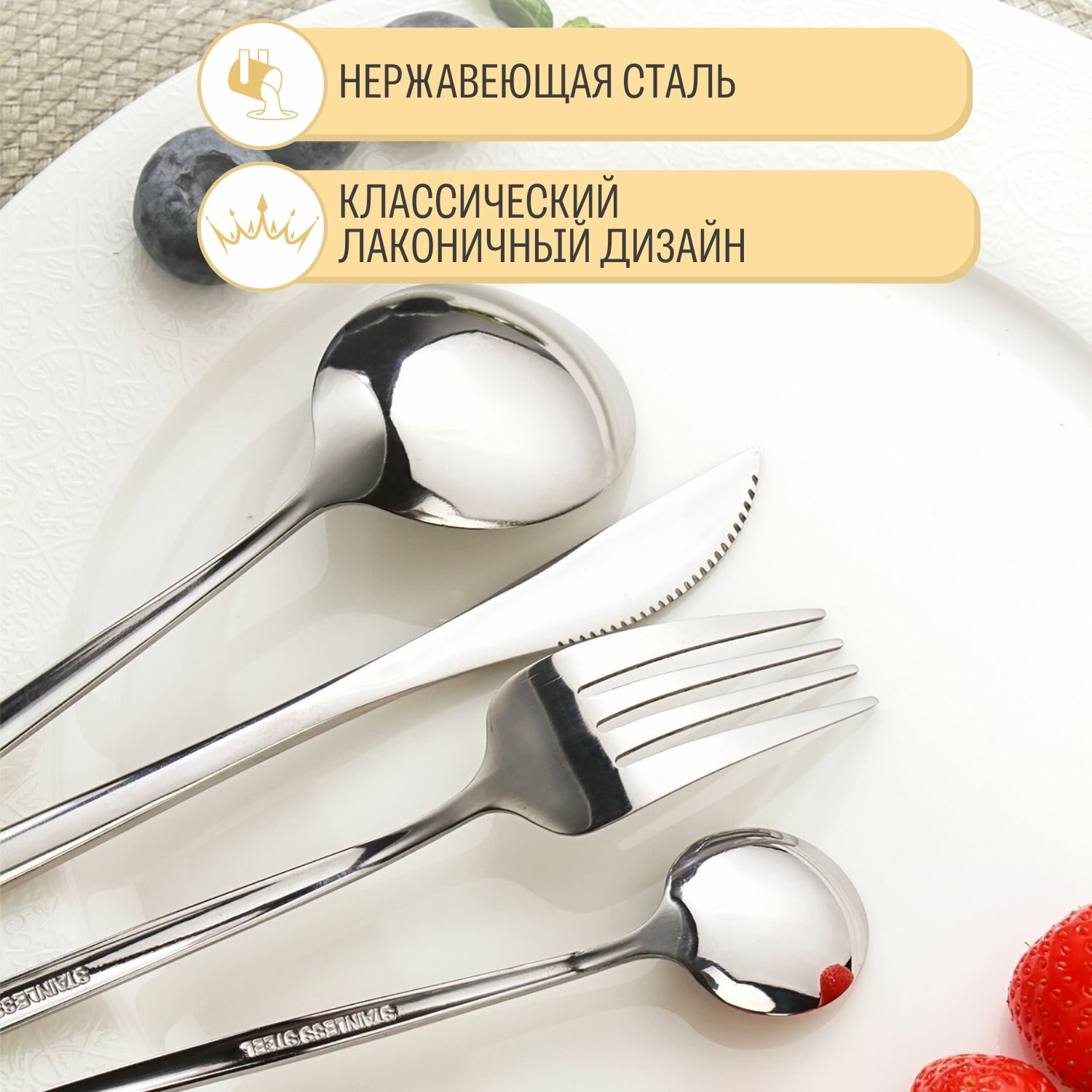 10 цен на Набор круглых столовых приборов 24 предмета серебро