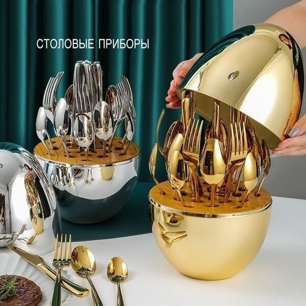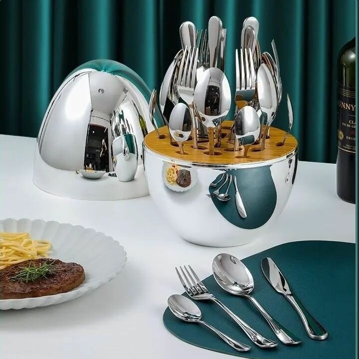 Отзывы на Набор столовых приборов 24 предмета комплект на 6 персон цвет "серебро" на подставке "Яйцо" / Подарок